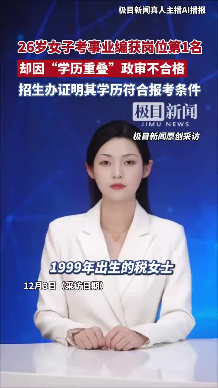 26岁女子考事业编获岗位第1名,却因因“学历重叠”政审不合格,招生办证明其学历符合报考条件