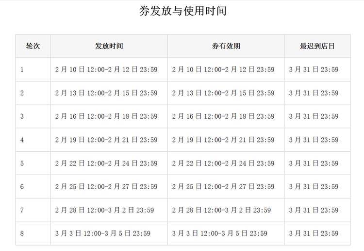 ![]() 2023年2月10日至3月5日。每间隔3天的当日中午12时开领,即2月10日、13日、16日、19日、22日、25日、28日、3月3日的12时领券。 ![]() 美团用户可从“美团App”,搜索“宁波消费券”进入活动会场领券,领券日12时开抢。发放数量有限,领完即止。 堂食券:满300元减90元、满200元减60元、满50元减15元、满30元减9元; 外卖券:满300元减90元、满200元减60元、满50元减15元、满30元减9元。 在美团APP内购买堂食、外卖可用券。领取成功的小伙伴可在“美团App-我的-红包卡券-券包”内查看已经获得的消费券。餐饮堂食、外卖消费券仅限在宁波市范围内指定的美团餐饮商户使用。 今晚8时,云闪付平台新一轮“喜迎新春·你消费我助力”宁波消费券 又可以报名了!本次 可申领的券种包括通用消费券、定向纾困券、乡村畅游券、商场春节券、春节团餐券、乡村惠购券。除特定券种外,全体在甬人员(包括域外来甬人员 )均可报名。本轮市本级消费券的报名将在2月12日24时结束,届时将委托宁波市鄞源公证处,通过摇号方式随机抽取获券消费者,再由平台派发到消费者的个人账户。派发到账的消费券将在2月15日10时生效,有效期至2月19日23时59分 甬品云购券、云上年货节券活动时间为1月20日-2月28日。京东用户可从“京东App” ,搜索“宁波消费券”进入活动会场领券,每日10时开抢。券面面额:甬品云购券为满4000元减200元,满200元减150元,满1000元减100元,满300元减60元,满100元减20元;云上年货节为满1000元减200元,满500元减100元,满200元减80元,满100元减40元。适用范围:宁波本地企业开立的POP店铺以及京东自营实物类指定商品。 |