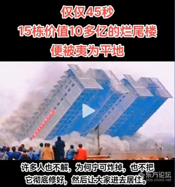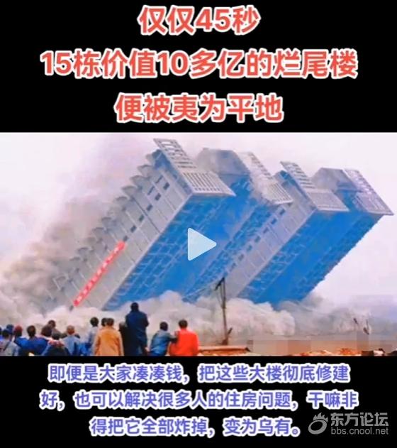 开发商认为直接爆破拆除,远比在原址上修修补补更加有利润可图。于是在短短45秒震撼爆破时间中,这15栋烂尾楼就全部拆除。