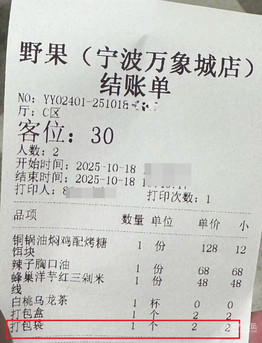 “……真是活久见,从来没有见过哪个餐厅打包袋还要收钱的……。