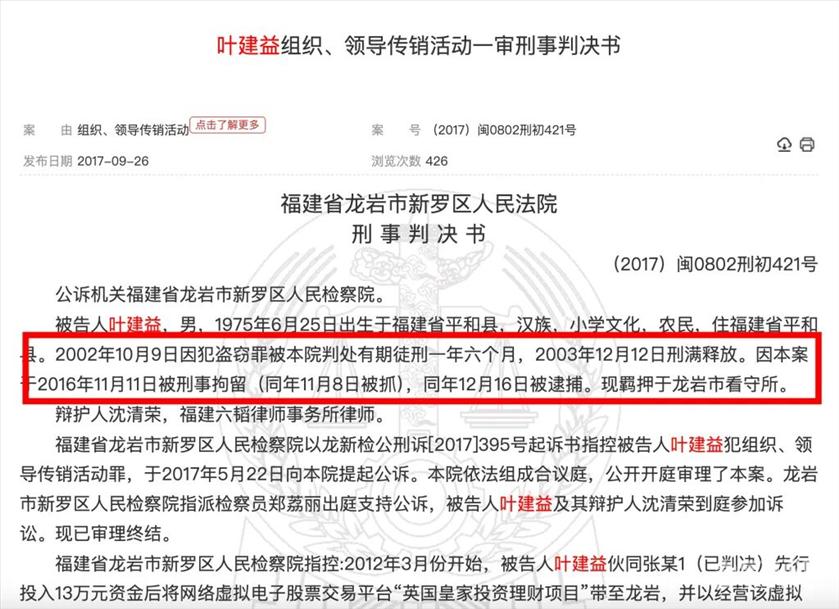 近期,一款名为“凤凰潮”(后换壳“凤凰V讯”)的APP软件被多地官方认定是“传销式资金盘骗局”,该APP此前在贵州、湖南等地爆火。 11月20日,澎湃新闻获悉,凤凰潮的实控人叶建益因涉嫌“传销罪”已被福建三明警方刑拘。当日,澎湃新闻以受害人身份致电三明警方,对方告知,人确实已经被抓,受害者可以在所在地派出所进行报案。 澎湃新闻了解到,这个打着“零成本、零门槛”的APP已经让众多参与者深陷其中,叶建益被刑拘前,至少十余个地方政府通过微信公众平台发布风险警示。 ![]() 实际控制人叶建益被刑拘,此前曾两次入狱 凤凰潮APP介绍显示,凤凰潮是隶属于海南省国海创新科技有限公司旗下的生态系统。其自称为“凤凰潮数字电商”,是数字经济时代下的财富增长新引擎。 工商信息显示,其主体运营公司海南省国海创新科技有限公司成立于2021年9月26日,注册资本1000万元,法定代表人为叶建益,并由其100%持股。其许可经营项目包括食品互联网销售;食品进出口;货物进出口;进出口代理;离岸贸易经营;保健食品生产;特殊医学用途配方食品生产等。 凤凰潮宣称:以 “助推乡村振兴,建设美好家园,赋能实体经济”为愿景,“不投资不推广也能赚钱”、“只要免费下载凤凰潮APP软件,每天看5个~8个视频,就可以获得平台给予的收益。” 今年9月22日,海口市市场监督管理局将该企业列入经营异常名录,列入原因为通过登记的住所或者经营场所无法联系。进一步搜索显示,该公司实缴出资额为0元。 ![]() 澎湃新闻还从知情人士处获知,叶建益此前就因传销被判过刑。 澎湃新闻根据中国裁判文书网检索发现,福建省龙岩市新罗区人民法院于2017年9月公开的一份刑事判决书显示,叶建益1975年出生,小学文化,2002年因盗窃罪获刑一年六个月,于2003年12月释放;2016年又因组织、领导传销活动罪被判处有期徒刑二年,涉案60余人、涉案金额130余万元。 2018年12月,中国裁判文书网另披露过一份《叶建益组织、领导传销活动罪刑罚变更刑事裁定书》,福建省三明市中级人民法院公开的一份刑事裁定书显示,执行机关福建省永安监狱于2018年8月6日以该犯在服刑期间确有悔改表现为由,提出减刑建议书,报送本院审理。本院认为,罪犯叶建益在服刑期间确有悔改表现,符合减刑条件。裁定:对罪犯叶建益减去有期徒刑二个月,刑期自2016年11月8日起至2018年9月7日止。 ![]() ![]() 号称“零成本、零门槛”,有人砸入40万元 与其他资金盘相比,凤凰潮号称“零成本、零门槛”,只需要每日打卡就可以赚积分、奖励。 据一位参与者向澎湃新闻提供的信息,凤凰潮称其底层逻辑就是一款APP和小程序的宣传推广。 ![]() 凤凰潮向投资人宣传了四种参与模式。 第一种,只投时间不投钱不邀请人,最慢。也就是0撸,不邀请人,一年半后每个月1300元左右。 第二种,只投时间不投钱但邀请人,相对较快。也就是0撸,邀请人,现在做得好的已经一个月60多万。 第三种,投钱投时间不邀请人。可以投53元、530元、2650元、5300元,不管多么有钱,每个人只能投5300元(实际上一个人可以拖多个账号),投资不邀请人,第五个月开始回本,第七个月回完本,第八个月全部是纯利润。 第四种,投钱投时间邀请人,变现最快。这种模式团队发展越快,收益越大,无法测算。 广东省中山市一位受害者家属梁先生告诉澎湃新闻,“我老婆是5月在佛山接触的凤凰潮,号称是‘做一次富三代’,上了三天的课后,完全被洗脑,在把家里的车卖了后,先后往里投了四十万元。甚至家里的女儿上大学都要去借网贷,整个家庭社会的人际关系完全崩塌。” 当记者问到是否赚到钱时,该家属告诉记者,“5月份时,凤凰潮的积分就提不出来了,我女儿当时想让她妈妈拿里面的积分换电脑都已经换不了,更不谈女儿的大学学费,目前我老婆已经离家出走,自己搬到出租屋跟一群人去做事业,这种洗脑比吸毒都可怕”。 梁先生表示,从9月份开始,他不断向公安机关、国家工商总局等部门举报。 据不少受害人家属反映,在“凤凰潮”关停后,先后换壳到“凤凰V讯”和“国海创新”两个APP上。 11月20日,梁先生告诉澎湃新闻,目前“凤凰潮”已经打不开,如果登陆会接到反诈中心的电话,目前其老婆“凤凰V讯”账号的积分也已经清零了,打开APP会显示系统繁忙。 ![]() 多地政府预警,传销式资金盘如何收割大众 澎湃新闻注意到,多个地方政府早已对凤凰潮APP发出各种风险提示。 今年1月,其APP上线地,遵义市市场监督管理局就发布风险提示,指出桐梓、湄潭、绥阳、习水、新蒲等地部分群众下载一款名为 “凤凰潮”的手机APP,以拉人头入会赚取工分的形式谋取利益,其运作模式与组织、领导传销活动高度相似。 此后,湖南金融、贞丰公安、秀山金融安全卫士、贵阳公安开阳县公安局、赫山区人民政府网、威宁自治县市场监督管理局、金融吉安、大龙市场监管分局、正安公安、万盛发布等至少十余个官方认证微信公众号先后发文警惕凤凰潮传销式资金盘骗局。 ![]() 微信公众号“湖南金融”于今年5月发布的《防骗警示窗:披着“零创”外衣的传销式资金盘如何收割大众?》,专门揭露“凤凰潮”的资金盘模式。 文章称,平台通过精心设计的“零撸赚钱”话术和多层级运作模式,系统性地构建了一个以虚拟积分(“凤凰币”)为媒介、以拉人头为核心的复合型诈骗体系。 针对凤凰潮宣