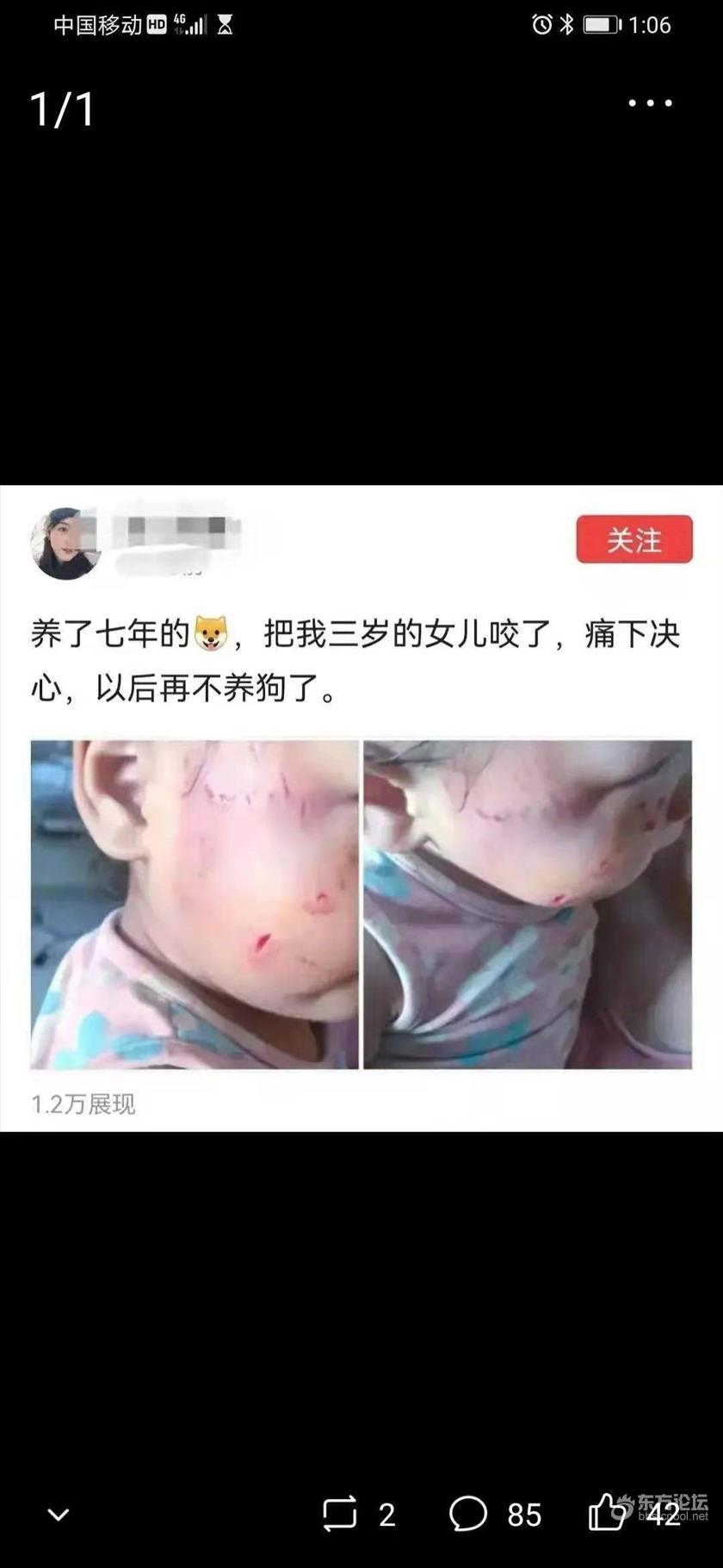 爱狗人士自己养了7年的狗,却把自家三岁的女儿咬伤了,看图伤得不轻,这确实让人心疼。爱狗人士喜欢鼓吹把自家养的狗当作了家庭的一员,朝夕相伴,与狗同乐,奈何狗始终是狗,养得再熟,喂得再好,也保不准什么时侯兽性发作。