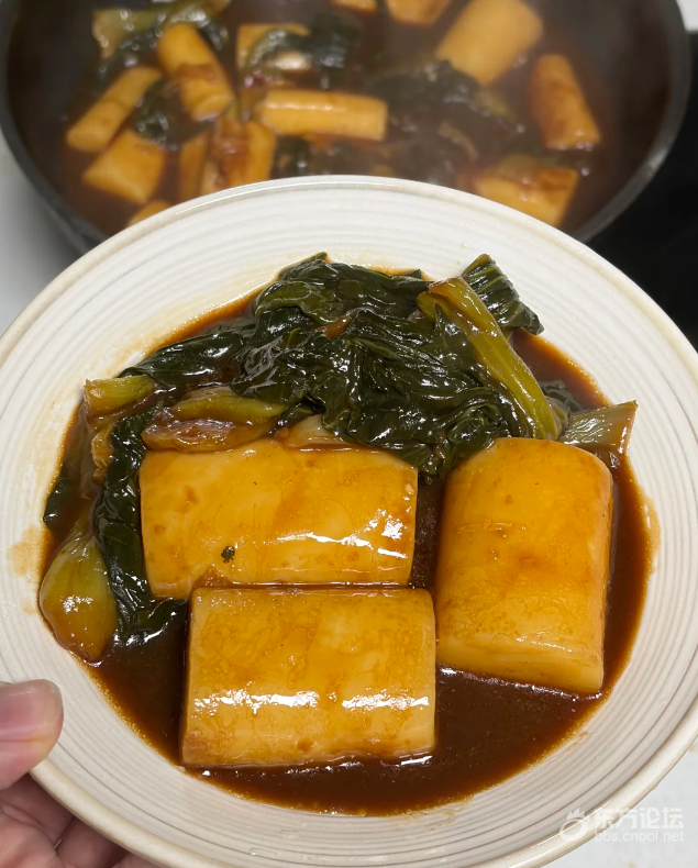 1.买老青菜洗净掰开,年糕切块,备用。 2.准备几颗蒜,几颗冰糖,小米辣(不吃辣可不放) 3.锅热倒油,放入蒜,放入青菜,煸炒至断生。 4.倒入2碗清水,放入年糕,倒入冰糖,生抽,老抽,蚝油。水开,中小火焖煮15分钟,即可出锅。(期间需翻炒防止糊锅) 5.盛出即可享用啦!