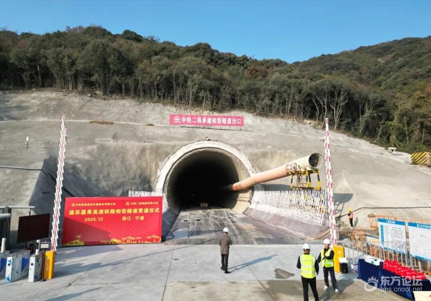 这是通苏嘉甬高铁全线首座贯通的用矿山法施工的山岭隧道,同时也是这条高铁宁波段贯通的首座隧道,标志着项目取得了阶段性进展。