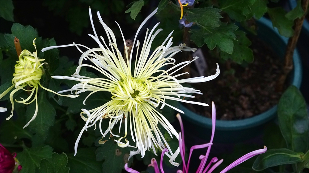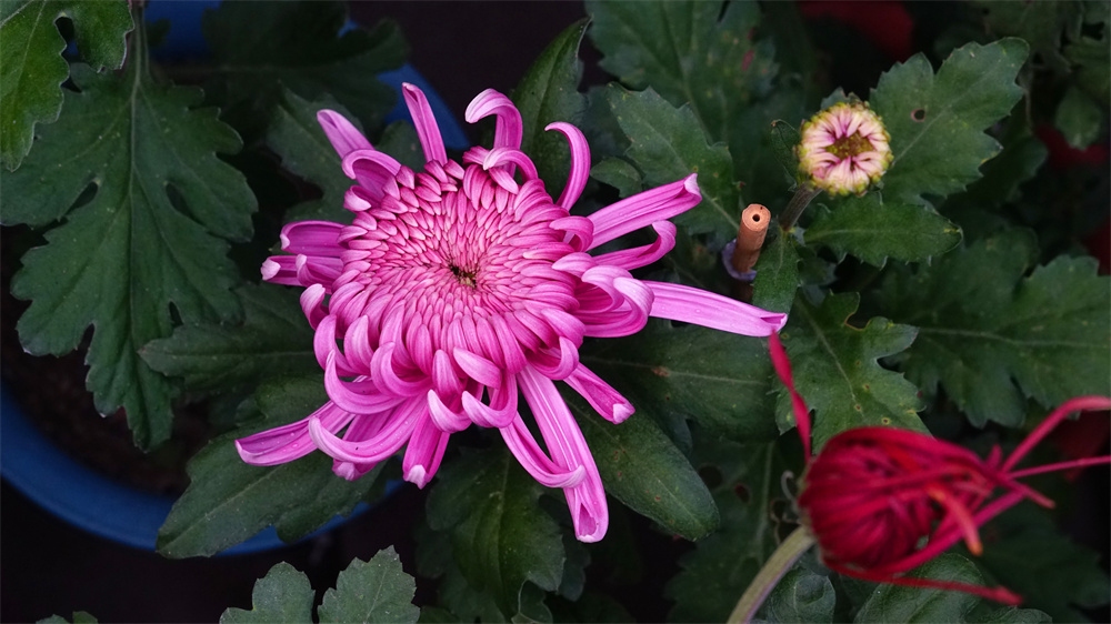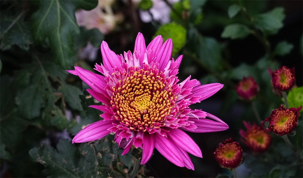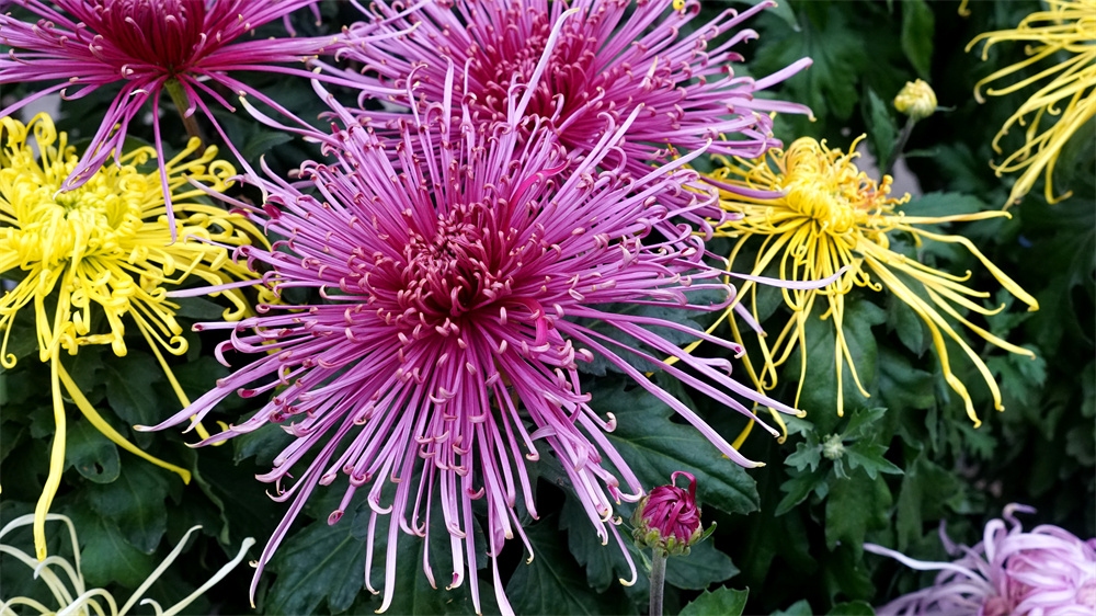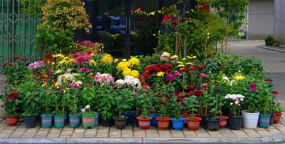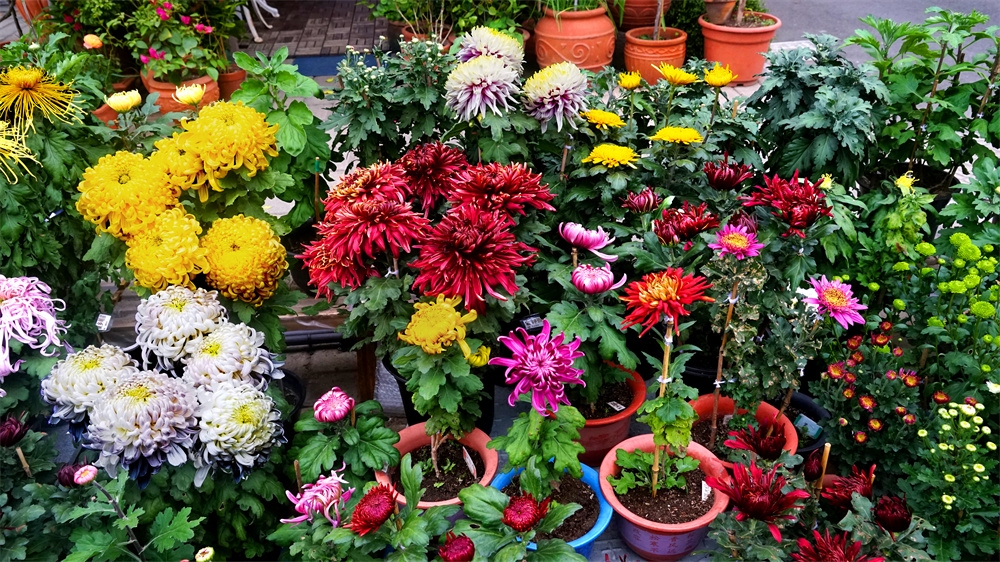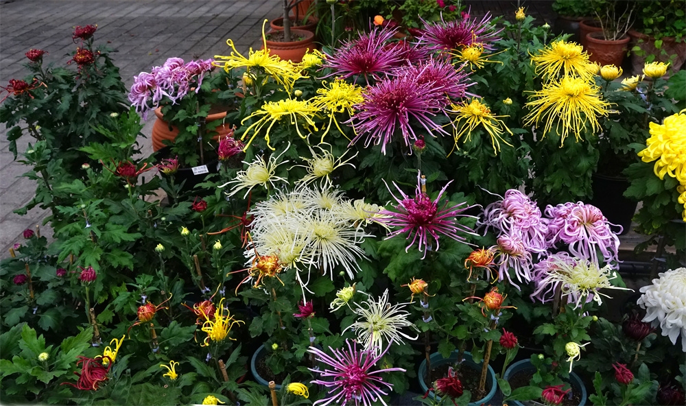 由于菊花品种不同开花时间也不同有的菊花落落大方已经高调盛开了有些菊花羞羞答答尚处于初开时光还有菊花姗姗来迟还正在孕蕾阶段