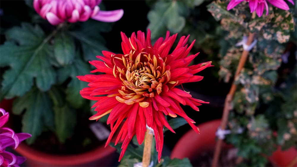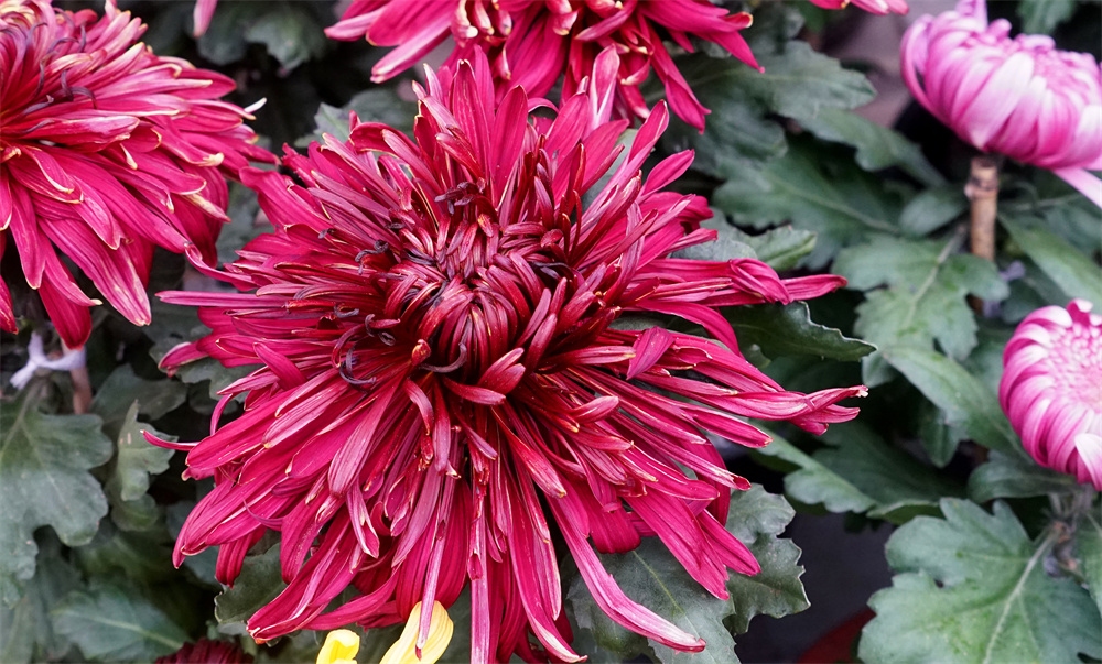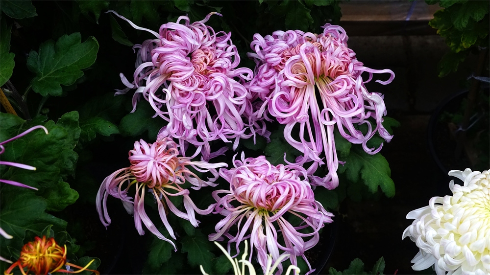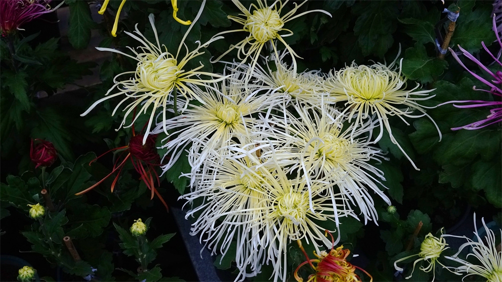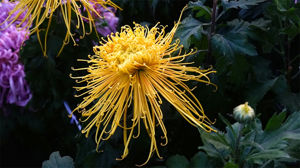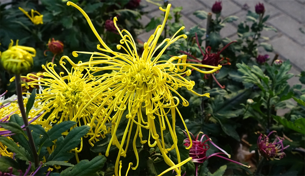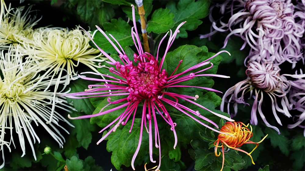 由于菊花品种不同开花时间也不同有的菊花落落大方已经高调盛开了有些菊花羞羞答答尚处于初开时光还有菊花姗姗来迟还正在孕蕾阶段