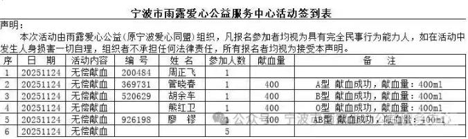 2025年第十八期活动|热血不分你我,善意没有边界 ![]() 当生命需要续航,总有人挺身而出;当善意需要传递,我们并肩同行。11月24日,志愿者献血公益活动暖心开启,致敬每一位心怀热忱的你,用一袋热血,为生命注入希望之光! ![]() ![]() ![]() ![]() 一袋热血,点亮生命希望:每200ml血液,可能为重症患者争取治疗时间,为术后病人送去康复力量,平凡举动里藏着最珍贵的生命馈赠。 ![]() 以公益之名相聚,和志同道合的伙伴一起,用实际行动践行善意,让爱心在传递中不断升温。 ![]() ![]() ![]() ![]() 我们以爱为帆,用热血传递生命的温度,让每一份善意都能抵达需要的地方~”生命因热血而滚烫,世界因善意而温暖。用热血书写公益担当,让爱心照亮更多角落! ![]() ![]() 编织:雨露志愿者 |