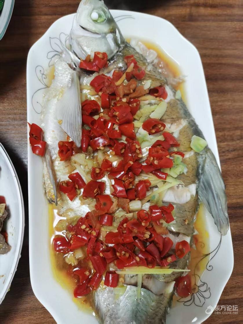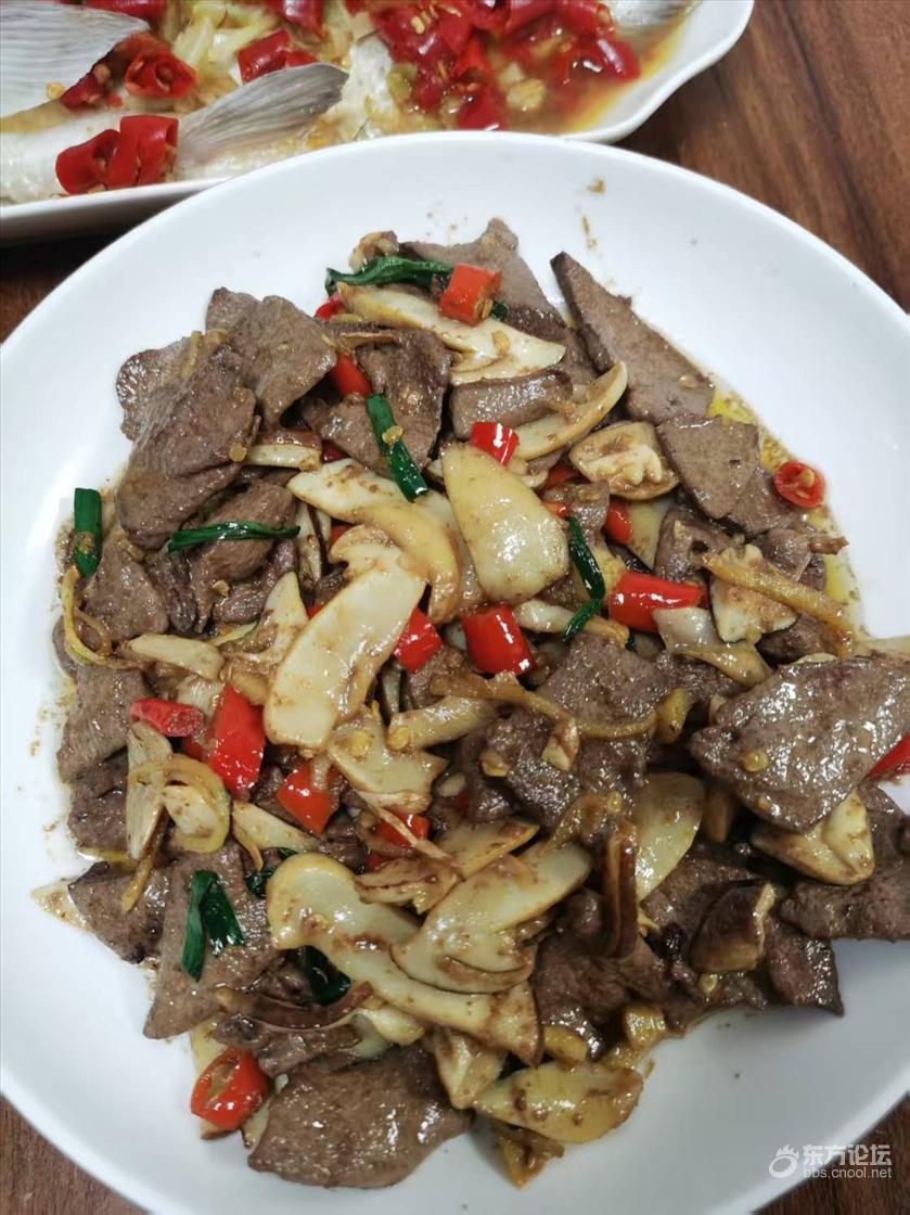 剁椒蒸扁鱼,猪肝炒松茸,娃还是挺给力,一起吃光光啦。鱼是刚钓滴,虽然缺个青菜(实在是吃不完),生活还是有滋有味哈