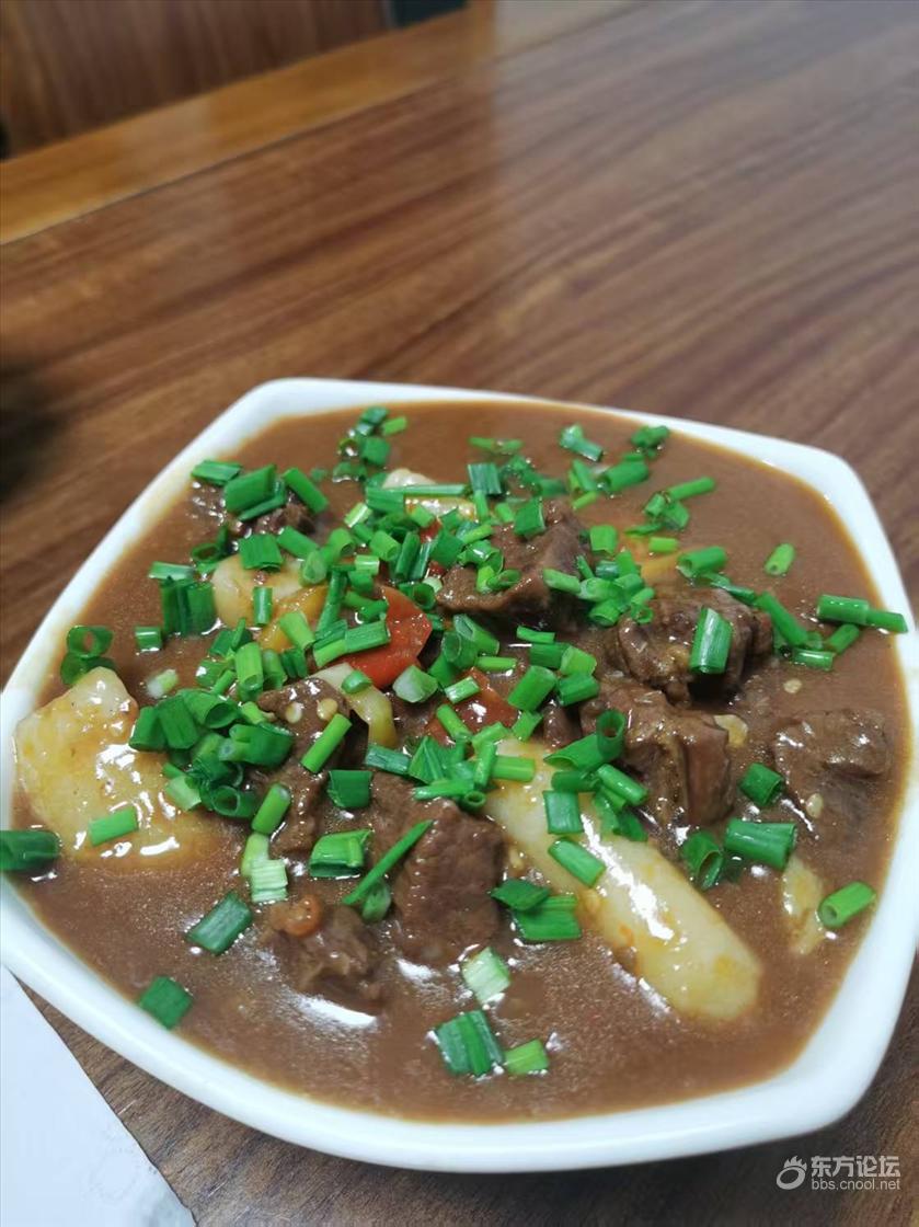 一餐两个菜。牛腩烧年糕太实在了