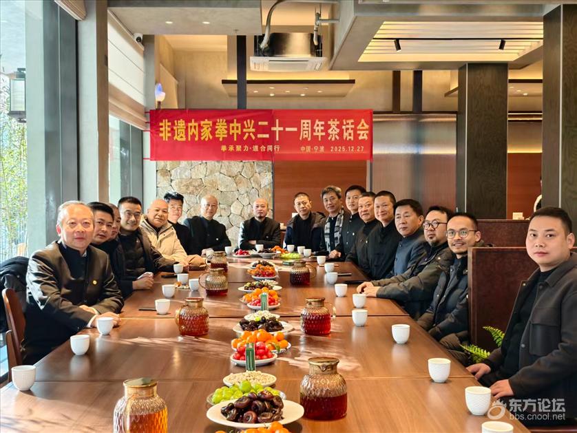 ![]() 一身拳服藏风骨,几盏香茗聚知音。2025年12月27日上午9时,非遗内家拳中兴二十一周年茶话会,于第十六代弟子开的天胜董记餐厅温情启幕。本次茶话会特设门槛,仅限内家拳拜师弟子、记名弟子参与,意在摒却喧嚣,让同门师兄弟围坐一堂,于茶香袅袅间畅叙拳情。在这里,大家既可以切磋拳法要义、分享研习心得,共探内家拳在新时代的传播创新之路;亦能追忆习拳岁月里的点滴过往,联结同门情谊,凝聚起流派传承的坚实合力。从8点半开始,陆续有十四代弟子从江西、上海、杭州、义乌过来的,也有十五代弟子身着内家拳中山装或正装陆续赴约。初见时的抱拳问候,抬手间尽是内家拳人的谦和与热忱;相视一笑的默契,早已超越言语,是同门师兄弟独有的温暖羁绊。董记餐厅早早备下琳琅鲜果与甘醇茶水,将会场布置得暖意融融,只为让师兄弟们能卸下拘束,尽兴畅谈。 ![]() 人员到齐后,众人依辈分有序落座,尽显内家拳尊师重道的传承礼法。主持人开场,清晰阐明活动宗旨,随后的自我介绍环节更显赤诚——每位师兄弟依次起身,自报姓名、字辈,细数自己近期为内家拳传承工作的努力情况,同时纷纷表示要多亲近师门、弘扬内家功夫、积极发展内家拳事业,更郑重许下未来为内家拳发展添砖加瓦的承诺。拳路漫漫,这份发自心底的担当,正是内家拳生生不息的底气所在。 ![]() 在各位师兄弟真诚分享、畅叙情谊之后,夏掌门最后发言,表示举办这次茶话会的目的第一个意思是大家拜我为师,认可内家拳门,我也好久没见你们……;第二个是全球经济大环境不景气,不知道你们过的还好不好?内家人要帮里帮外,大家要携手共进……;第三个是这次第一次把各个传习点的拜师弟子聚在一起,主要讲一下我们明年的工作重点……;第四个是随着内家拳发展,大家水涨船高,如今已发展到十八代,有必要通知大家知晓……;第五个是深入解读内家拳宝峰道场七不收新五不传,及2026年度非遗内家拳总部(宝峰道场总传习点)相关活动准入规范。夏掌门说身为一个内家拳人要做到以下几点:1、对本门内家功夫长练不止。2、通过自己切身实际练习的感悟,在不虚空夸大的基础上当积极宣传本门内家功夫。3、有资格传习者当积极弘扬本门内家功夫的养卫智慧。4、各尽所能,积极支持发展壮大内家拳养卫健康事业。5、爱国爱拳、尊师重道非常重要……。最后对过去几年进行了回顾,对未来进行了展望,字字恳切,既肯定了众弟子多年来的坚守付出,又为后续传承工作指明方向。 ![]() 茶话会的尾声,众人齐聚堂前合影留念,镜头定格下一张张笑意盎然的脸庞,也珍藏了这份同门相聚的珍贵时光。相聚的时光总是短暂,却因一份拳缘格外绵长。 ![]() 拳承一脉,道合同行。二十一周载风雨兼程,内家拳的传承路上,幸有一群志同道合的师兄弟,执手相伴,共护薪火。未来,愿这份拳情永不褪色,愿内家拳的古韵新风,在代代相传中愈发璀璨。 |