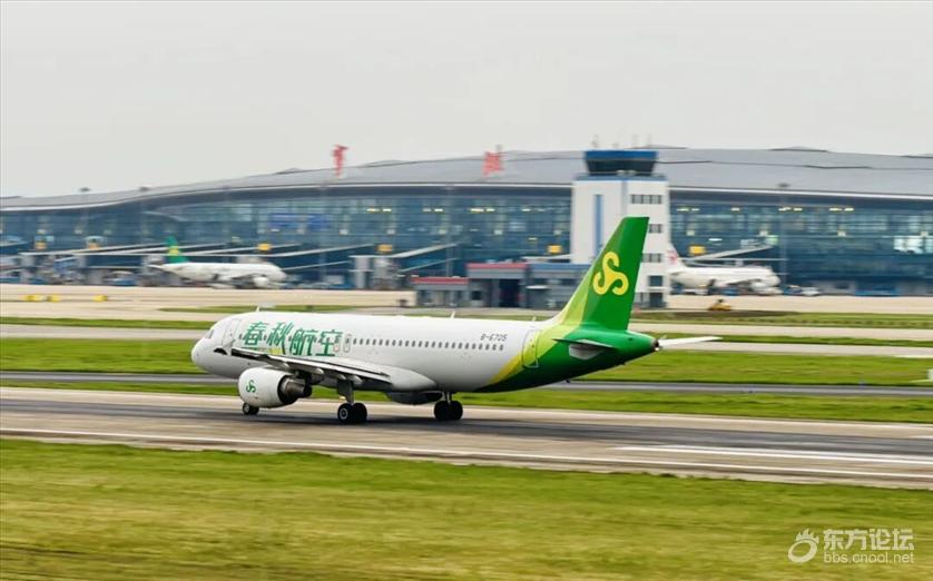 春秋航空客机在宁波机场降落。范洪 摄