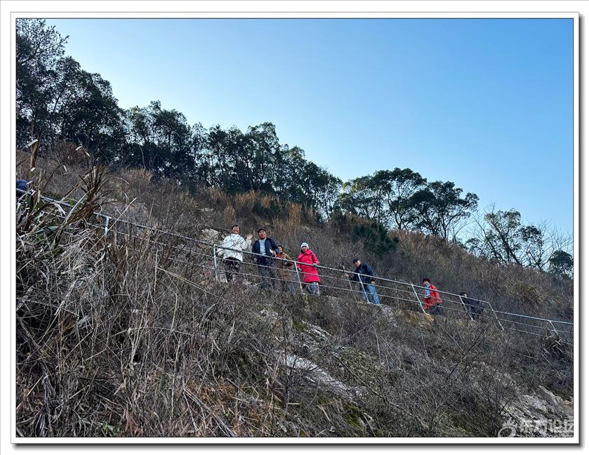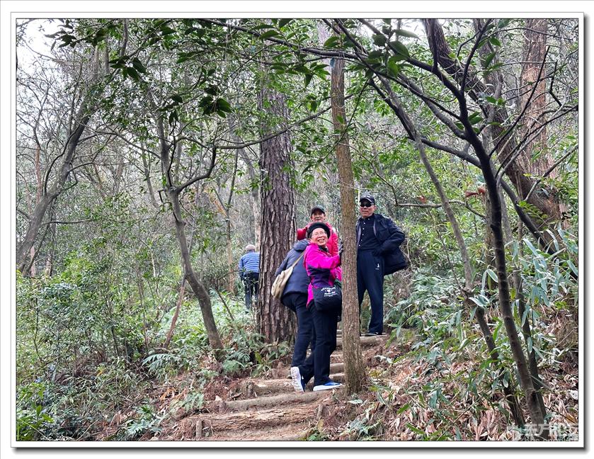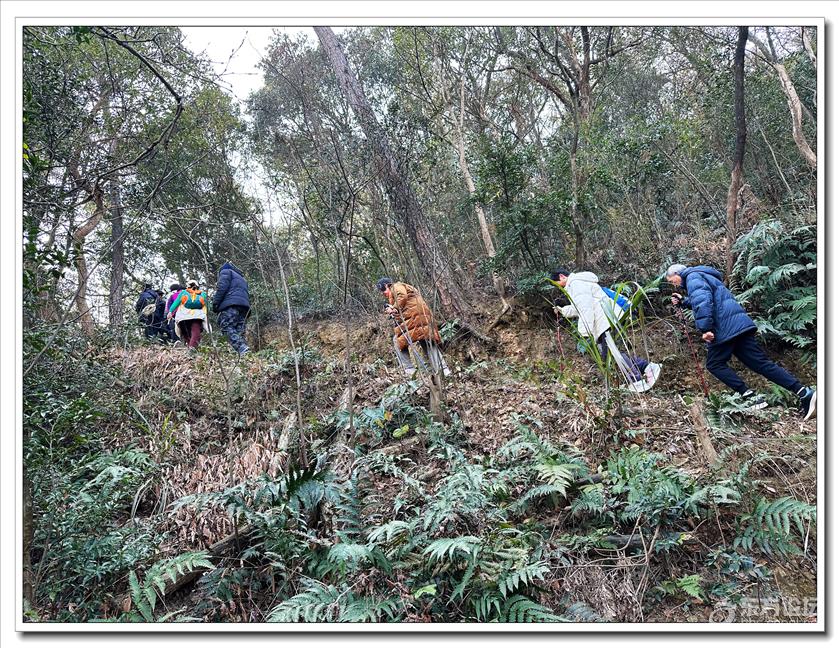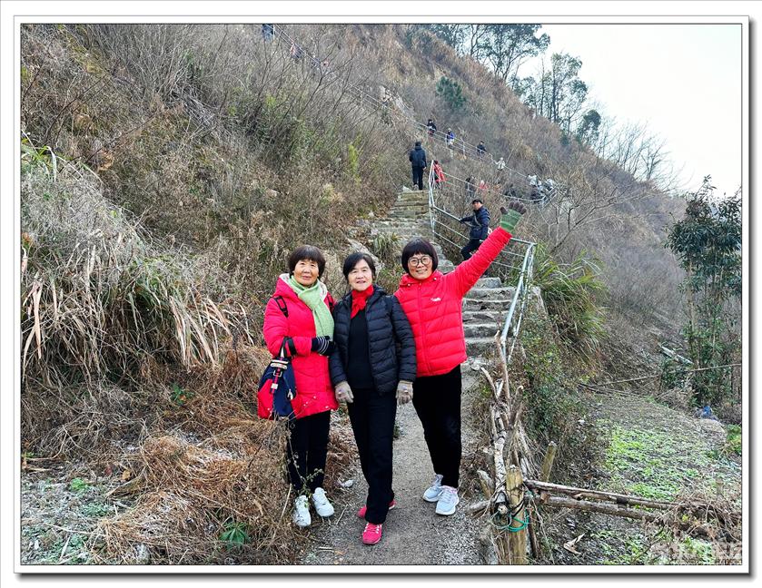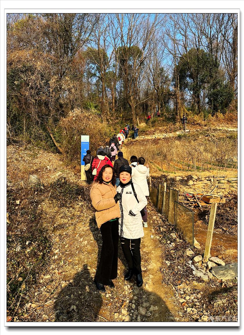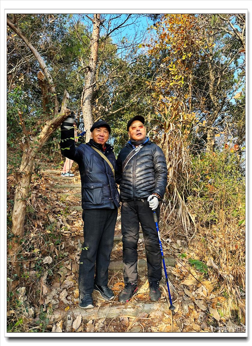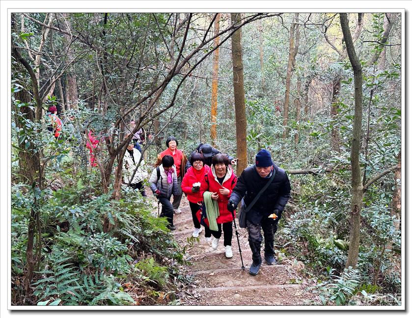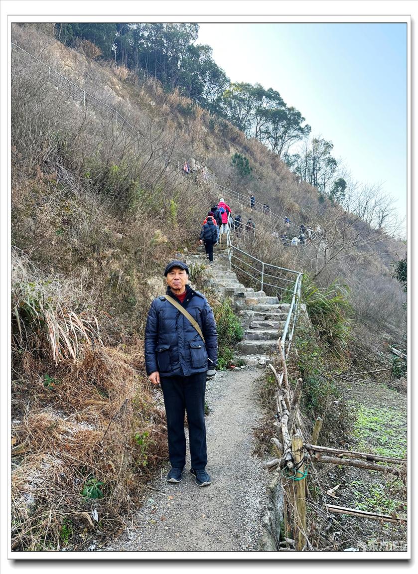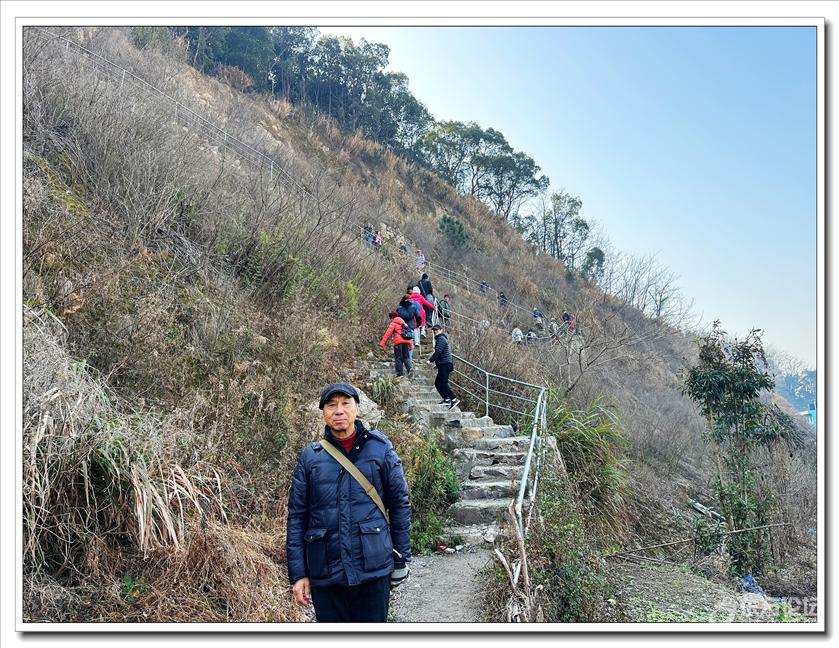 2026年1月9日,快乐游走中老年群60人,由“湖上见客”带路,相聚东钱湖高钱生态村公交站,今天的线路是高钱山-小灵峰-白石山。上山之前,我们大部队拍了一张活动集体照,然后来到登山步道口。天公作美,天高云淡,适宜爬山,算起来也是一种幸运,呵呵!高钱山不高,我们在大片的绿树掩映中开始了向山上挺进。山间小路沿着山脊向上,有一段路有点陡。好在路线不是很长,个别群友体力不支,在热心群友的帮助下,也跟上了大部队,随着脚步的升高,视野也变得越来越开阔。走上山顶,就到了小灵峰,一路上比较平坦,没有什么难度。下坡后,我们大部分群友继续向白石山挺进,原来的陡峭山路,现在开通了游步道,被称为东钱湖上的美景。大家爬上山顶,来到山上亭子,遥望四周风景,秀丽怡人。这时浩瀚的湖面一览无余地展现在众人面前,宽广的湖面,与周围山水相映、相应成景:远看青山如黛,近观绿水微澜;湖映山影,山映湖光,水天一色,蔚为壮观。大家纷纷拍照留念。这条线路算是老路,但是周围已经修建了不少的游步道,真的是焕然一新。感谢“湖上见客”的带路,感谢群友们的积极参与,又一次欢快的活动结束。先上一张活动集体照(由“朋友”拍摄提供)