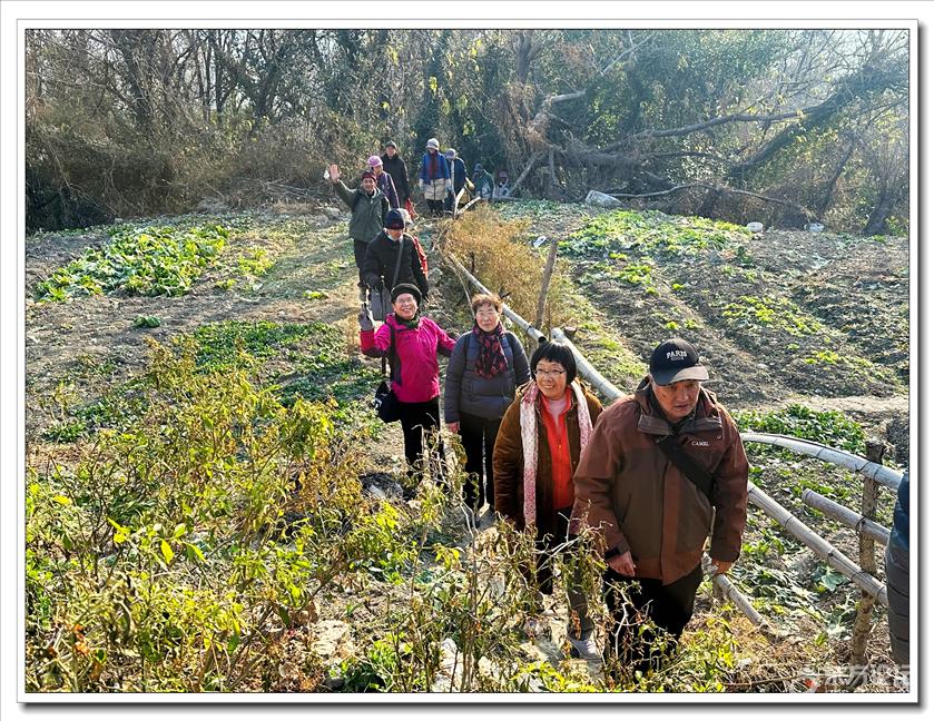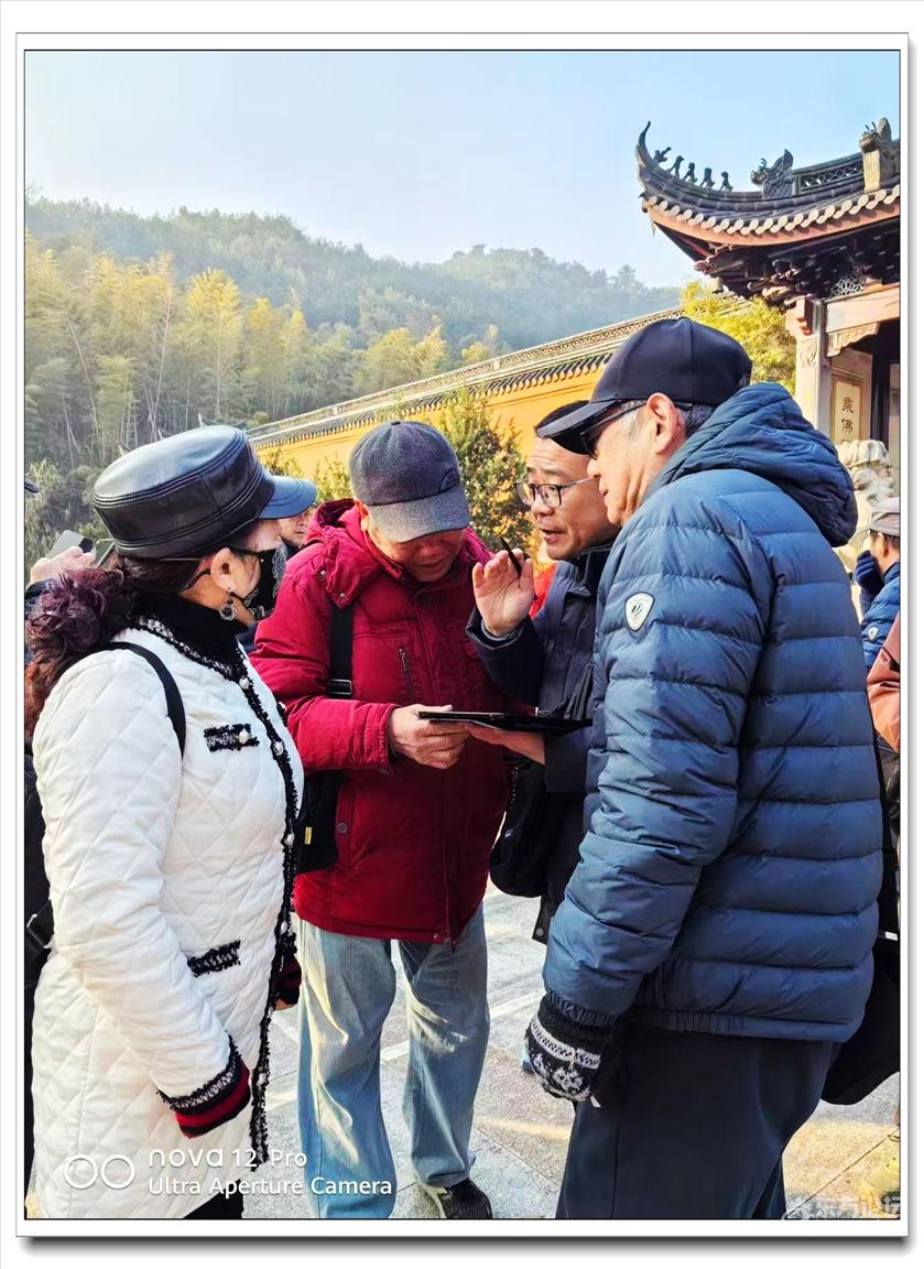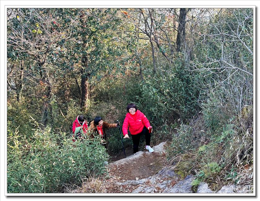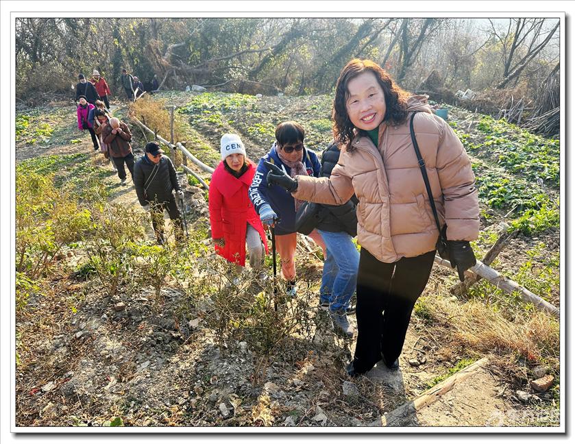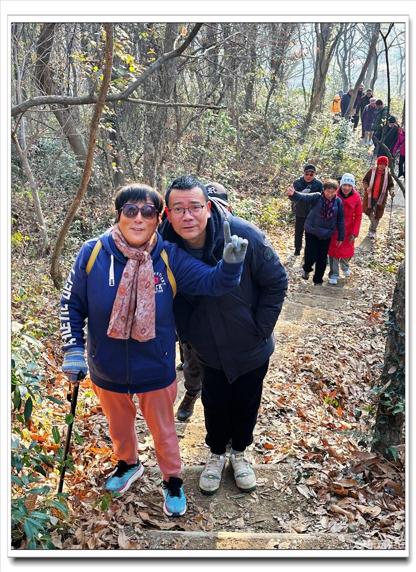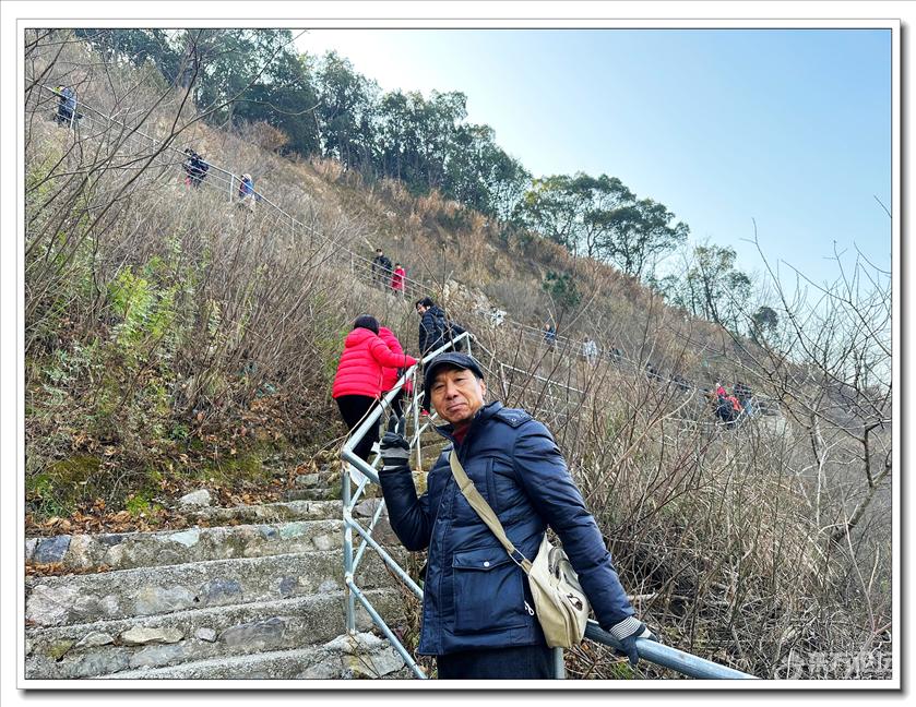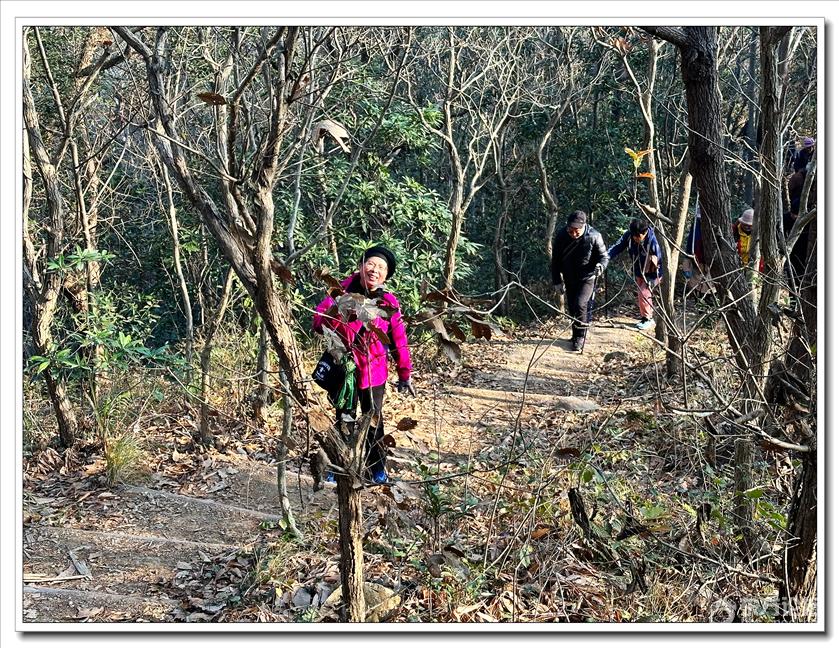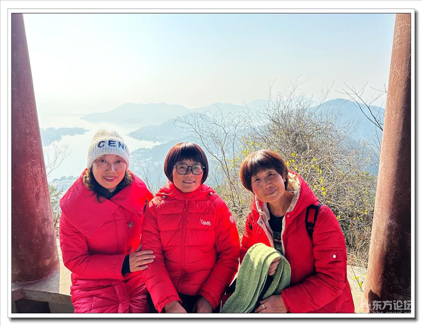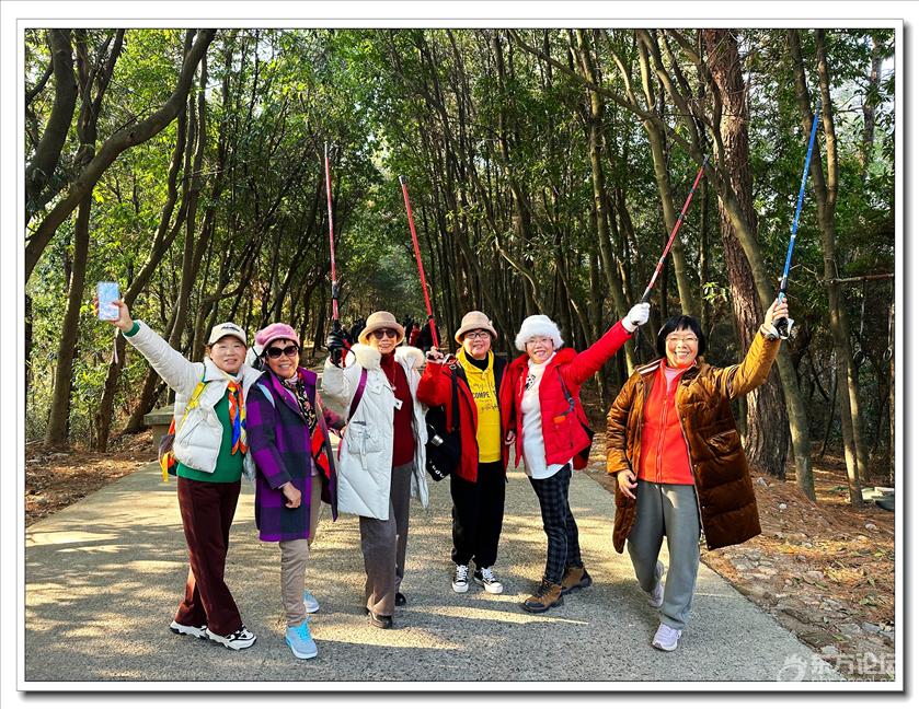 2026年1月9日,快乐游走中老年群60人,由“湖上见客”带路,相聚东钱湖高钱生态村公交站,今天的线路是高钱山-小灵峰-白石山。上山之前,我们大部队拍了一张活动集体照,然后来到登山步道口。天公作美,天高云淡,适宜爬山,算起来也是一种幸运,呵呵!高钱山不高,我们在大片的绿树掩映中开始了向山上挺进。山间小路沿着山脊向上,有一段路有点陡。好在路线不是很长,个别群友体力不支,在热心群友的帮助下,也跟上了大部队,随着脚步的升高,视野也变得越来越开阔。走上山顶,就到了小灵峰,一路上比较平坦,没有什么难度。下坡后,我们大部分群友继续向白石山挺进,原来的陡峭山路,现在开通了游步道,被称为东钱湖上的美景。大家爬上山顶,来到山上亭子,遥望四周风景,秀丽怡人。这时浩瀚的湖面一览无余地展现在众人面前,宽广的湖面,与周围山水相映、相应成景:远看青山如黛,近观绿水微澜;湖映山影,山映湖光,水天一色,蔚为壮观。大家纷纷拍照留念。这条线路算是老路,但是周围已经修建了不少的游步道,真的是焕然一新。感谢“湖上见客”的带路,感谢群友们的积极参与,又一次欢快的活动结束。先上一张活动集体照(由“朋友”拍摄提供)