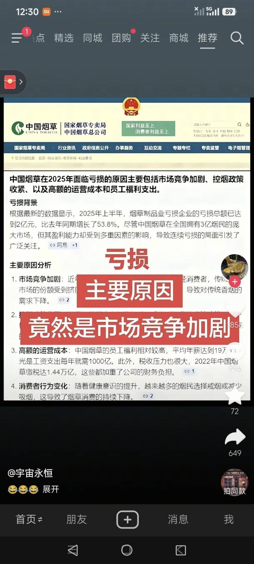 一百元一包烟,税收占七十多。