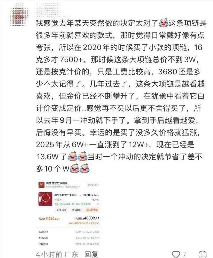 一条金项链,一夜涨价15200元,一年多涨了近10万元
