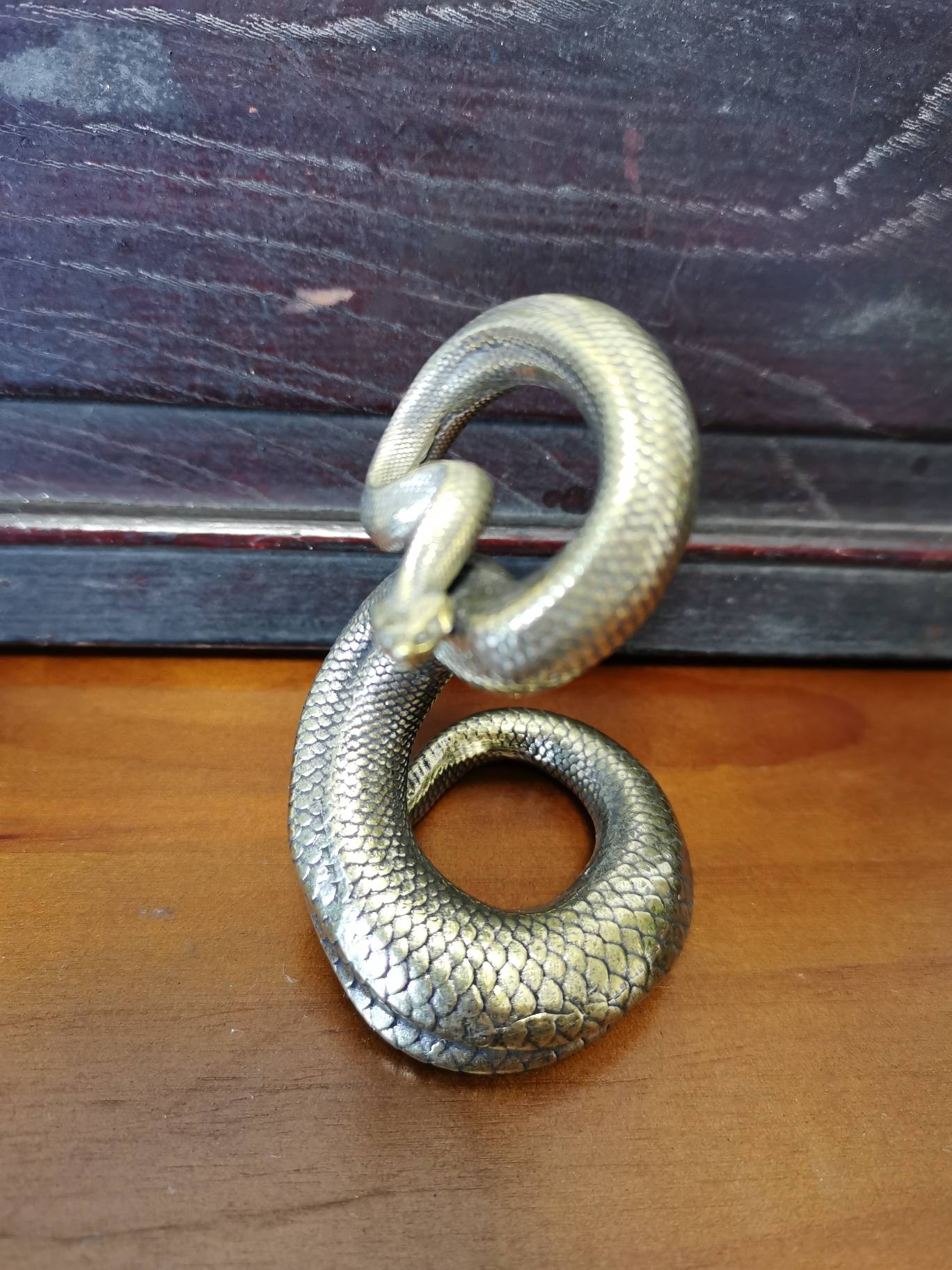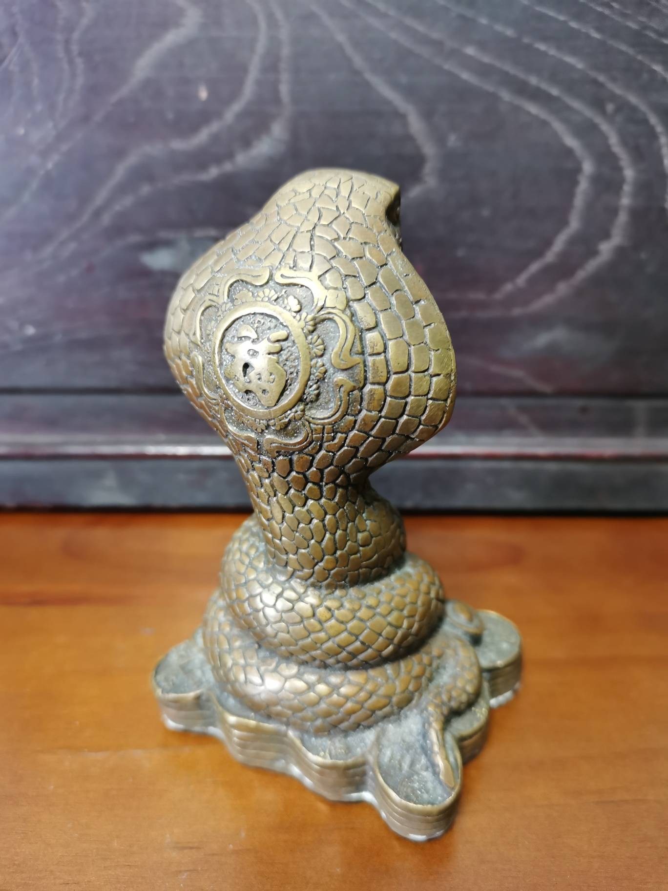 斗转星移,眨眼间2026已过去半月——但蛇年好像还未进入腊月罢?记起年初,我曾发过一帖《蛇年说蛇》,故这里不再啰哩啰嗦说蛇的故事了。。。只是简单发几张图片给大家看看。听说南方最厉害的蛇是“眼镜蛇”——下面的图片有一个铜雕就是眼镜蛇,那是在一个地摊上淘的。还记得那摊主信誓旦旦说是“解放前”的东东,我一看底部是铜钱造型,不禁哑然失笑。。。也不争辩,只是还价。。。记得读中学时,有音乐老师专门向我们介绍过一首民族音乐(乐器合奏)名《金蛇狂舞》——很好听的,突然想起但已经多年未听到了。