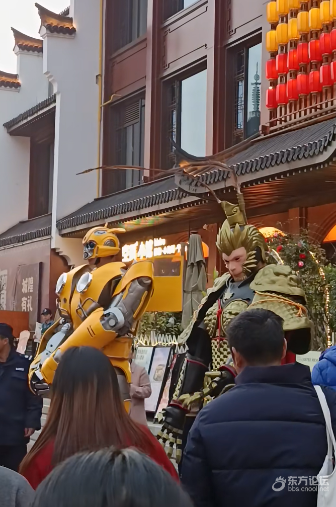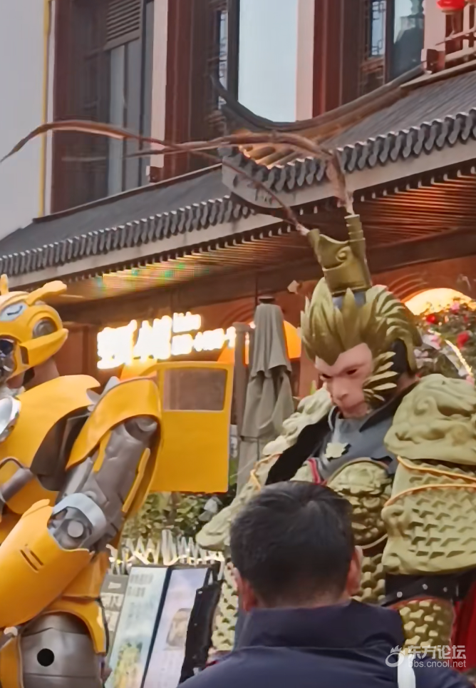 宁波城隍庙惊现悟空和大黄蜂,不少人围着拍照,虽说这是去年的热门IP,不过今年大家依旧很喜欢。