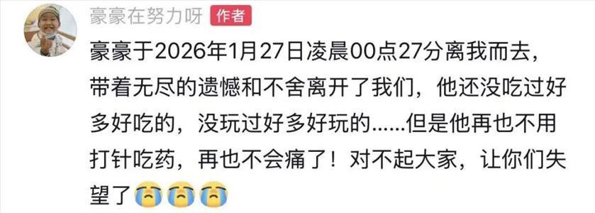 “豪豪走了,他不会再痛了。” 1月27日上午,曾感动全网的抗癌“小王子”豪豪的家属在社交账号发文,宣布豪豪已离世。 ![]() ![]() ![]() ![]() ![]() |