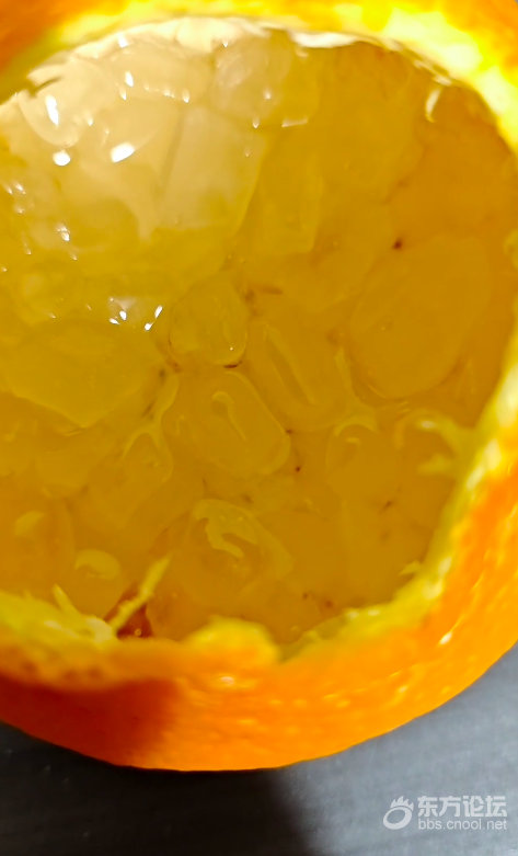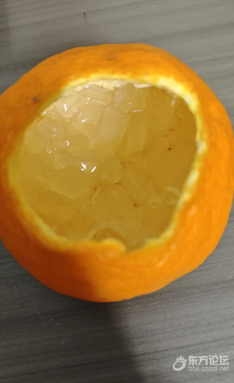 这是耙耙干的皮,有一天我剥了一个完整的橘子皮,然后我想着冰糖没地方放,我就用它来放冰糖,然后昨天放到室外去(用橘子皮盖着的)今天拿回来一看,自己融化了,这还能吃吗