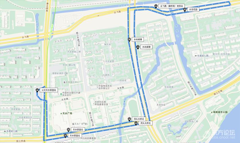 ![]() 云飞路(康桥南)地铁站接驳线 近日 江北康桥南路(天合路至云飞路) 施工完毕恢复通车 为加强地铁7号线云飞路(康桥南)站 与4号线丽江路站之间的换乘便捷性 自2月10日起 云飞路(康桥南)地铁站接驳线 开通试运行 ↓ 线路全线长3.9公里,票价2元,高峰时段(6:45—9:00,16:00—19:00)发车间隔10分钟,平峰时段(9:01—15:59,19:01—20:45)发车间隔15分钟。 公交天水家园站始发首班6:45、末班20:45。 线路走向:康庄南路、丽江东路、康桥南路、云飞路、康桥南路、丽江东路、康庄南路。 ![]() 站点设置:公交天水家园站、天水家园北(丽江路地铁站)、湾头大桥北、水尚阑珊【云飞路(康桥南)地铁站】、长岛花园(注:位于云飞路)、云飞路(康桥南)地铁站、水尚阑珊【云飞路(康桥南)地铁站】、湾头大桥北、天水家园北(丽江路地铁站)、公交天水家园站。 |