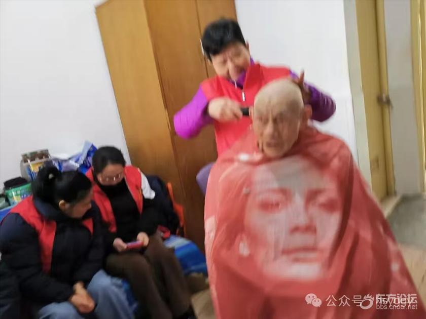 饭后,邵月娥老师轻轻为爷爷围上围布。剪刀轻响,历经岁月风霜的白发徐徐落下,爷爷的笑容却如孩童般绽开——那不只是剪去头发,更是剪去一段孤独的时光。