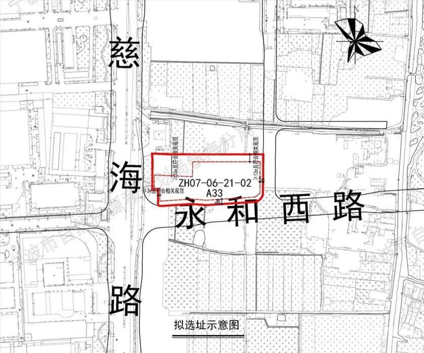 尚志规划高中拟选址示意图。来自资规部门公示,下同 尚志规划九年一贯制学校 尚志规划九年一贯制学校位于慈海路以东、永镇路以西、永和西路以北,总用地面积约14478平方米,最高容积率1.0,总建筑面积约5922.8平方米,其中地上建筑面积约4982.8平方米,建筑限高同样24米,用地性质为中小学用地。 主要建设内容包括新建教学楼、门卫等学校设施。 工程总投资概算7955万元。
