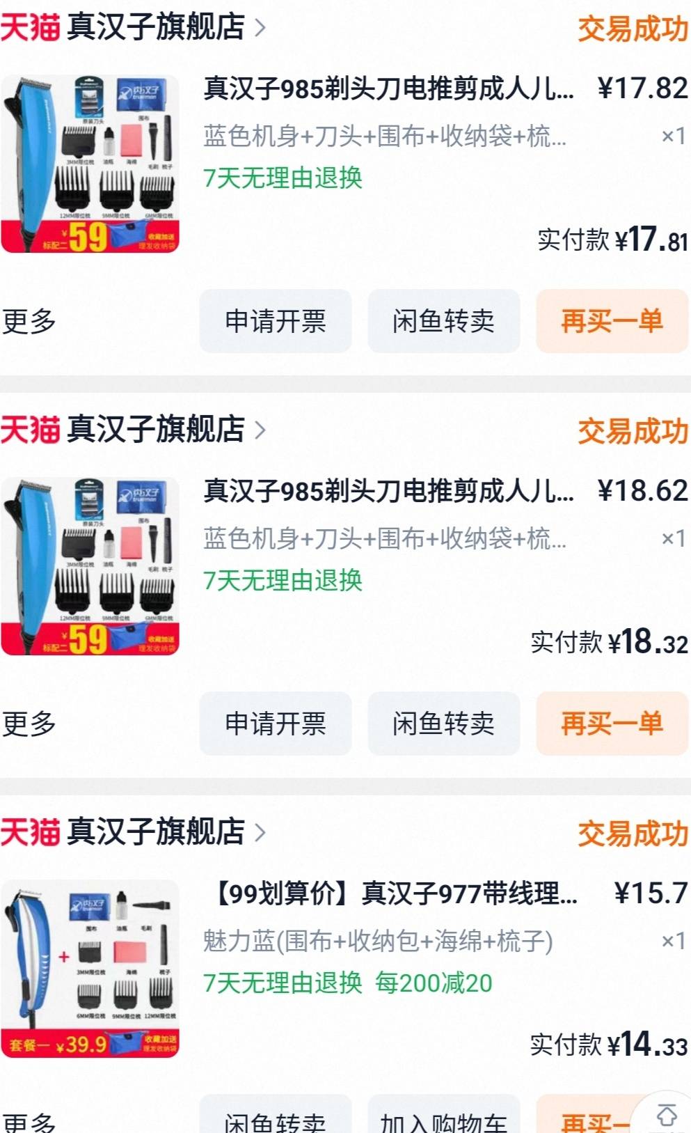 十多年前就不去理发店了。