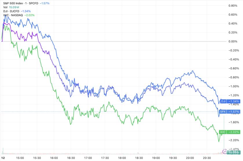 美东时间周四,投资者对人工智能(AI)颠覆性的担忧持续发酵,三大指数均跌超1%,纳指以2%的跌幅领跌。 ![]() (三大指数日内走势,来源:TradingView)截至收盘,道琼斯指数跌1.34%,报49,451.98点;标普500指数跌1.57%,报6,832.76点;纳斯达克指数跌2.03%,报22,597.15点。 今年以来,随着一些AI工具的推出,部分板块遭受冲击,包括软件公司、出版商、金融服务企业等。投资者担心,这些AI工具可能复制它们的业务模式,或至少侵蚀其利润率。 在AI可能颠覆财富管理业务的担忧下,摩根士丹利等金融股承压;卡车运输和物流公司如C.H. Robinson股价暴跌14%,因市场担心AI将优化货运运营,从而压缩部分收入来源。 AI颠覆担忧甚至蔓延至房地产行业。市场认为更高的失业率将打击办公空间需求,CBRE和SL Green Realty等股票因此走低。 Freedom Capital Markets首席市场策略师Jay Woods表示:“AI曾是推动这些股票飙升、估值达到极端水平(虽未极端到离谱)的唯一动力,如今却成了压制它们表现的因素。” Yardeni Research总裁Ed Yardeni表示:“投资者对AI的影响——无论是积极还是消极——都感到非常紧张。目前,他们更关注其颠覆性的一面。” 投资者纷纷转向更具防御性的板块,沃尔玛和可口可乐股价分别上涨3.8%和0.5%。 在标普500指数各板块中,必需消费品和公用事业板块涨幅居前,均上涨超过1%,并带动必需消费品板块创下历史收盘新高。 苹果大跌5%,抹去了今年以来的涨幅。此前有媒体报道称,苹果筹备已久的升级版Siri计划再次遇到挫折,部分AI功能的推出时间可能推迟到5月份,甚至更晚。 热门股表现大型科技股普跌,英伟达跌1.64%,苹果跌5.00%,微软跌0.63%,谷歌跌0.63%,亚马逊跌2.20%,Meta跌2.82%,特斯拉跌2.62%,博通跌3.38%,甲骨文跌0.43%,奈飞跌4.72%,美光科技涨0.88% 热门中概股集体下跌,纳斯达克中国金龙指数跌3.00%,阿里巴巴跌3.40%,京东跌2.65%,拼多多跌4.16%,蔚来汽车跌2.37%,小鹏汽车跌2.26%,理想汽车跌2.08%,哔哩哔哩跌4.87%,百度跌4.64%,网易跌0.28%,携程跌6.01%,腾讯音乐跌10.57%,小马智行跌2.59%。 |