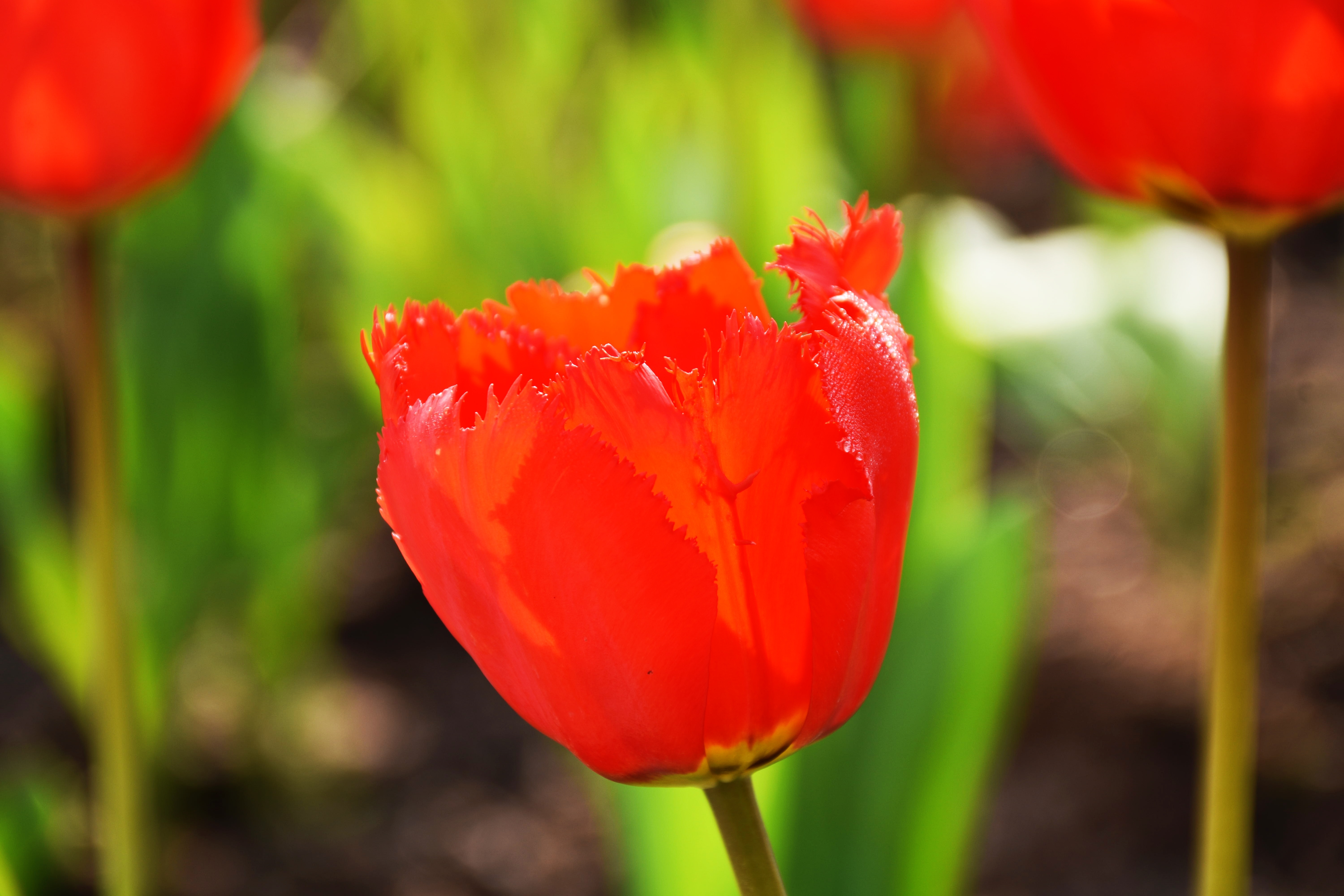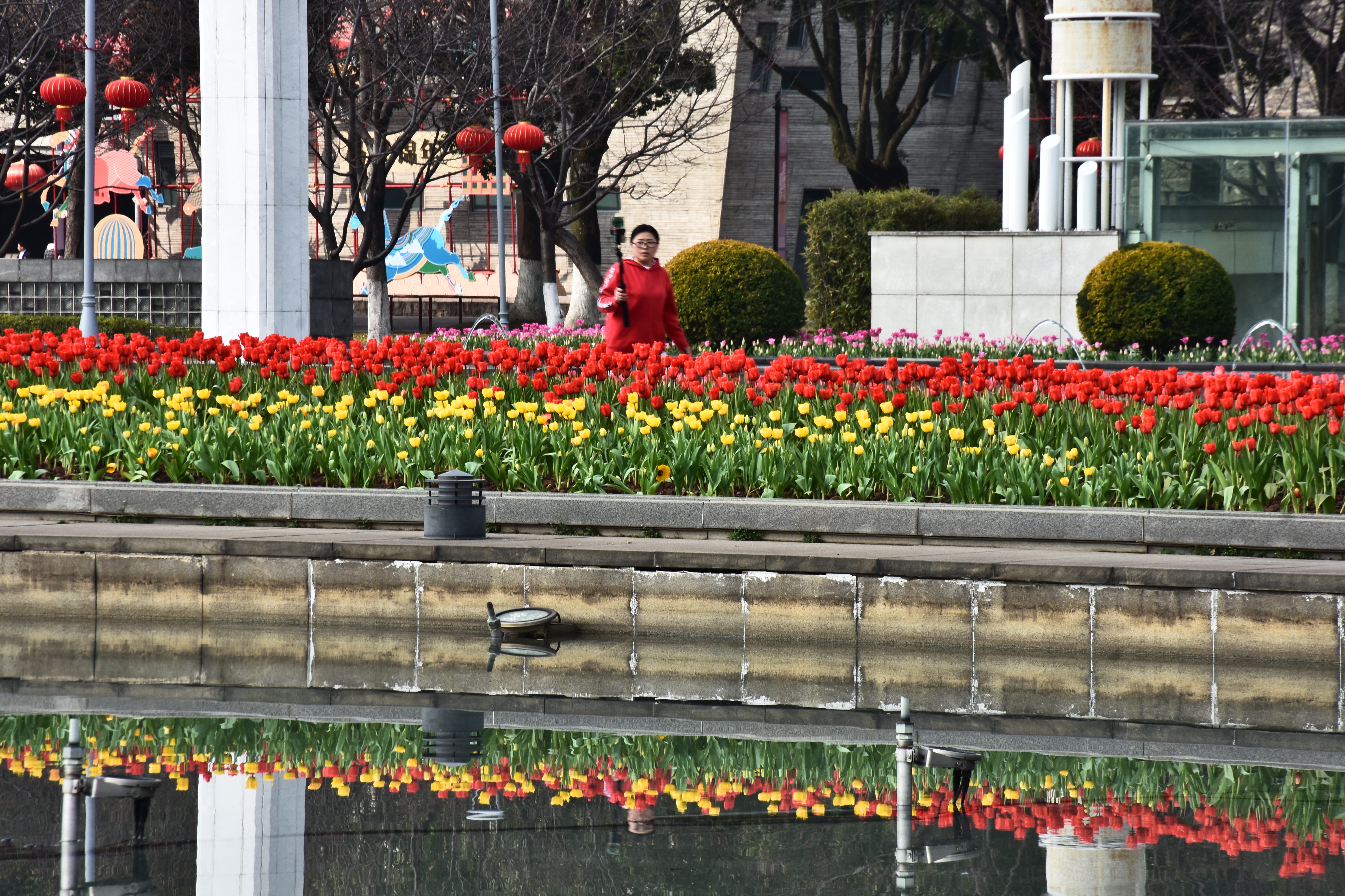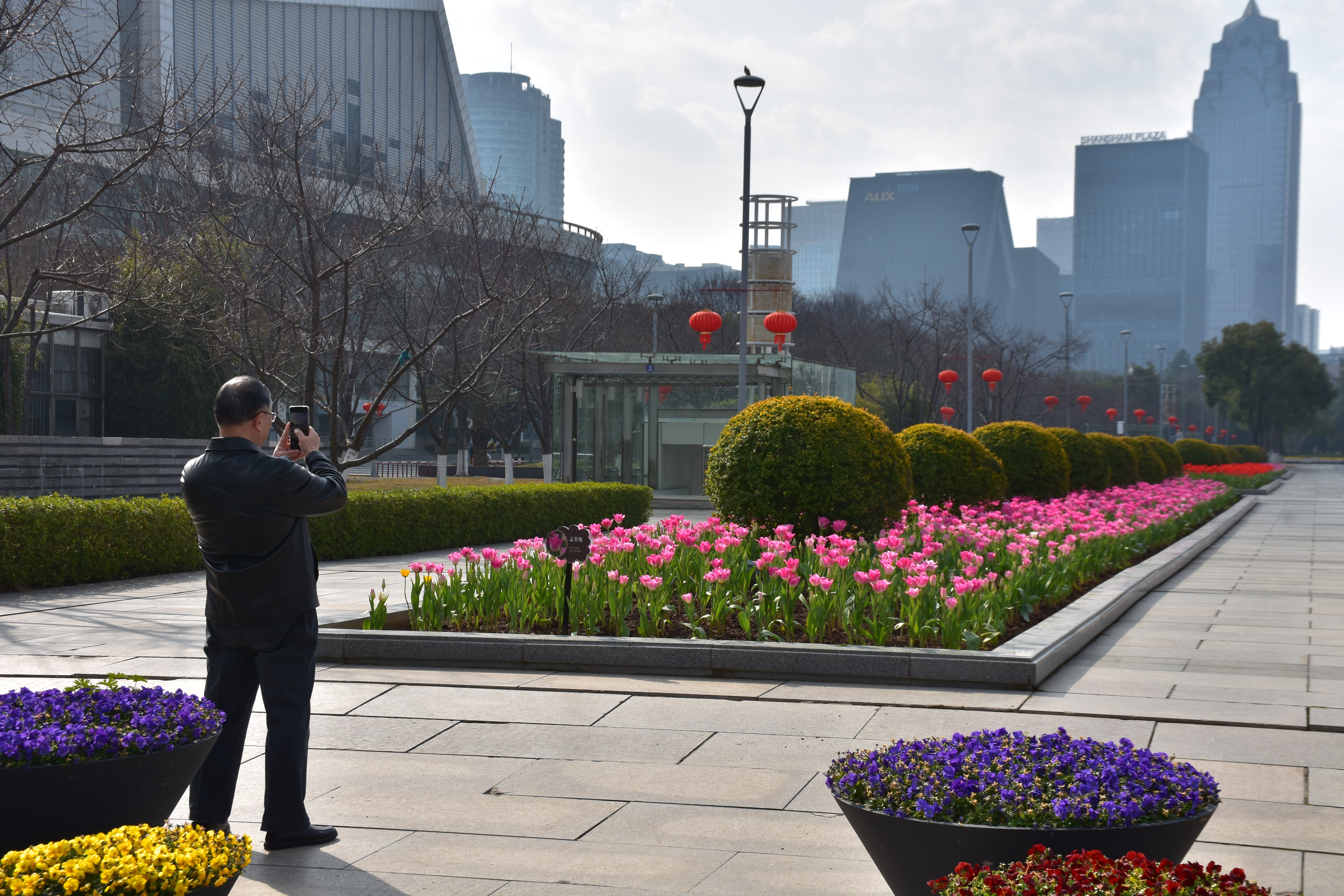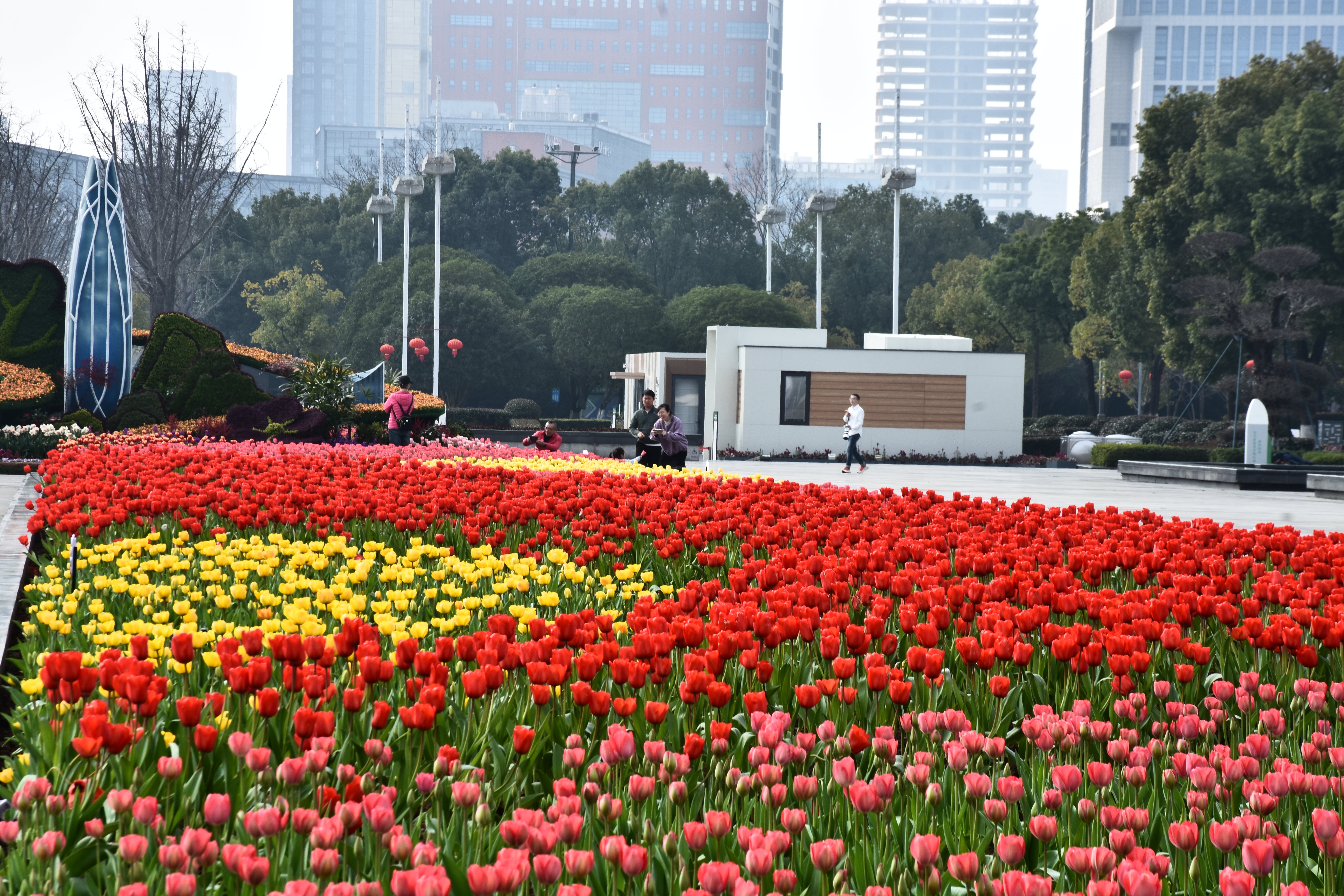 郁金香绽放的都市序曲晴光破晓染街东,艳骨初舒破冻风。紫霞堆鬓凝香远,金盏承露映楼红。车流漫逐芳茵动,人影轻随晓雾融。最是春声初唤醒,一城花事赴新隆。