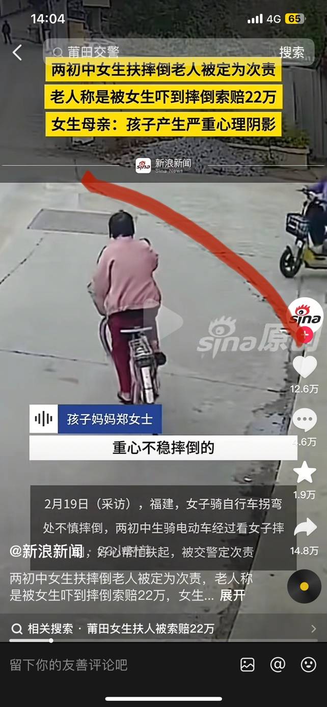 我看了视频, 这个有点像无接触事故了,那老人有可能是避让采取紧急刹车摔倒了的。
