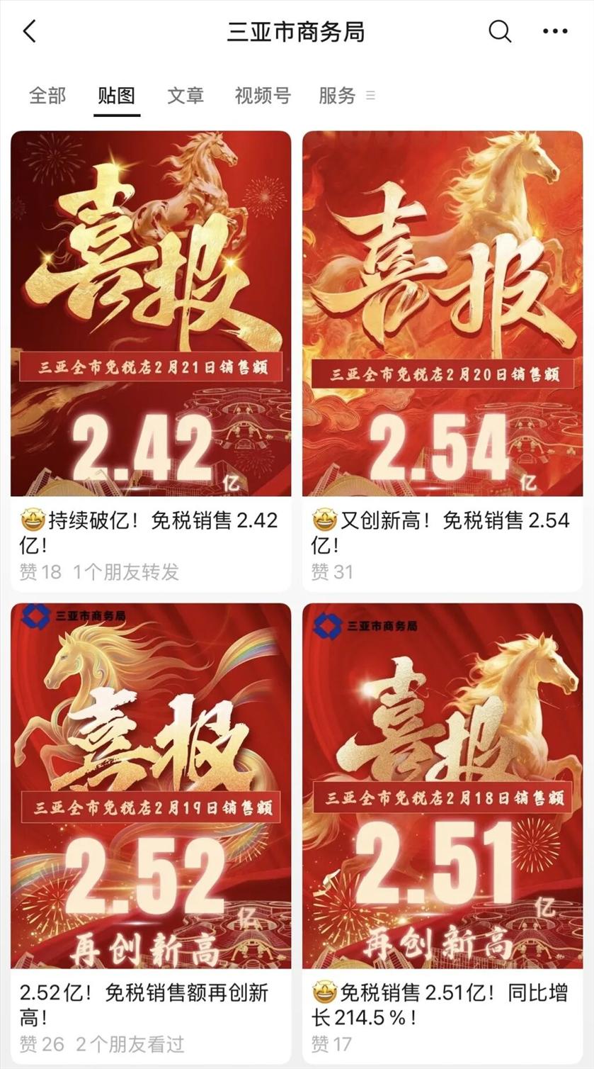 面对“天价机票”,航司方面也给出了回应。根据“海口发布”消息,海南航空工作人员表示,春运期间机票价格受市场供需关系影响出现波动,属于正常现象。所有国内航班经济舱票价均严格按备案价格体系执行。“我们通过内部系统实时监控票价波动,确保春运期间票价处于合理区间。” 另据新华社消息,民航局已批复多个批次航班增加计划: 春节假期即将结束,民航迎来返程客流高峰。交通运输部数据显示,2月22日(农历正月初六),预计民航旅客运输量266万人次,比2025年同期增长7.5%。 民航各单位正全力应对节后返程客流高峰,科学安排航班运力,优化出行服务,确保旅客安全顺畅出行。华北空管局围绕大流量运行与复杂天气叠加等特点,动态优化流量控制措施,提升整体运行效率。北京首都机场强化与各部门协同联动,及时调配出租车、机场巴士等运力,确保航班与地面交通有效衔接。南航对近期进出东北地区,以及新疆、海南等地的热门航线持续增加航班数量,并通过更换宽体机执飞进一步增加运力。 针对近期海南出岛机票紧张,中国民航局已批复多个批次航班增加计划,在海口增加超110架次航班,精准执飞上海、北京、成都等热门目的地。 作为全岛封关运作后的首个春节,海南文旅市场也“火力全开”,尤其是免税销售额持续破亿。 2月22日,三亚市商务局披露的数据显示,2月21日三亚市四家离岛免税店销售总额2.42亿元(人民币,下同),同比增长214.5%(农历同比增长18.2%),本月累计销售额33.2亿元,同比增长24%。 ![]() 澎湃新闻发现,自马年春节大年初一(2月17日)以来,三亚市的免税销售总额连续5天突破2亿元。2月17日,三亚市四家离岛免税店销售总额2.04亿元,创“年初一”新高。2月18日,三亚市四家离岛免税店销售总额达2.51亿元,同比增长214.5%(农历同比增长36.7%),其中cdf三亚国际免税城销售额单日破2亿。2月19日,三亚市四家离岛免税店销售总额2.52亿元,同比增长262.6%(农历同比增长27.6%)。2月20日,三亚市四家离岛免税店销售总额2.54亿元,同比增长281.7%(农历同比增长28.7%)。 ![]() 同程旅行平台数据显示,春节假期前半段,海口美兰机场、三亚凤凰机场进港机票热度环比上月涨超300%。酒店住宿方面,截至2月19日,海口、三亚春节高品质酒店预订入住比例显著超越全国平均水平。其中,位于三亚海棠湾、亚龙湾等核心湾区的酒店比较抢手,海棠湾旅游度假区内酒店入住热度环比上月增长156%,海景套房、家庭多卧套房、亲子主题房等房型最受欢迎。 与此同时,当地民宿也迎来入住高峰。澎湃新闻了解到,若逸美宿旗下位于三亚的若逸ROY(三亚海棠湾免税城店)2月18日至2月20日连续3天满房。 此外,万宁、陵水等地民宿和度假酒店也在节中迎来入住高峰。同程旅行的报告显示,追求“高质价比”的“95后”、“00后”年轻群体构成客源主力。细化来看,以海景度假、冲浪为主题的酒店民宿备受追捧,节中高峰期甚至“一房难求”。 |