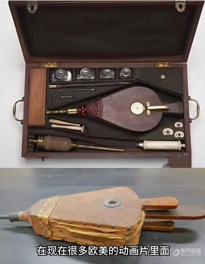 烟熏灌肠机这张图记录的是1745年在巴黎的塞纳河边一个士兵在救助一个溺水的妇女,但是他救助的方式跟我们现在的人工呼吸心肺复苏不一样,他是吸一口烟就像我们抽的那个香烟然后把这个烟通过女人的肛门直肠吹进这个女人的身体里面,这种奇葩的救助方式是从哪里演变过来的呢,北美的印第安人那里,就是我们抽的这个香烟最开始就是从印第安人那边传到欧洲,然后再传到我们这边的,这个香烟本身一开始就有两种用途,第一种就是用嘴抽吞云吐雾,第二种印第安人他们会把这个烟通过肛门吹进人的身体里面用来治病,具体能不能治病只有印第安人知道,后面哥伦布发现了美洲大陆以后,欧洲人就把印第安人的这套东西给学过去了,加上欧洲人本身就有灌肠治病的这个传统,他们就自己搞出来一套烟熏灌肠法,回到最开始的这张图后面被救助的这个女人不知道是因为瞎猫碰到死耗子,还是因为这个女人可能刚掉进河边里最后还真被救活了,这个事后面引起了很多欧洲国家的官方人员重视,比如水城威尼斯他是直接立法去推广了这个烟熏灌肠法,但用嘴对着肛门吹这个画面看着多少有点尴尬,所以后面他们就发明了那烟熏灌肠机,这个工具在现在很多欧美的动画片里面都还能看到,像我们现在很多水边配的都有那个救圈,当时欧洲有很多地方配的就是这个烟熏灌肠机,那这玩意儿到底有没有作用呢,这么说吧整个威尼斯的历史上每年都有不计其数的人掉进水里淹死,但是用这个灌肠机真正救活的人就39个,用我们现代科学来看人溺水死亡是因为水堵住了呼吸道,肺不能气体交换了,而直肠它是另外一套系统,往里面吹气它根本就不通肺,所以西方的医学真的讲究科学也就最近一二百年的事,在古代还真不如中医。