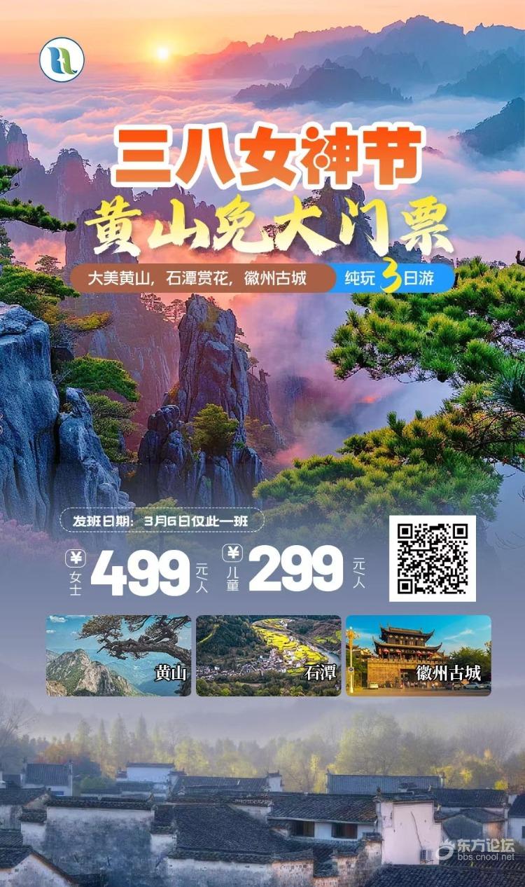 🌼 女士特惠:499元/人,男士补黄山门票190元