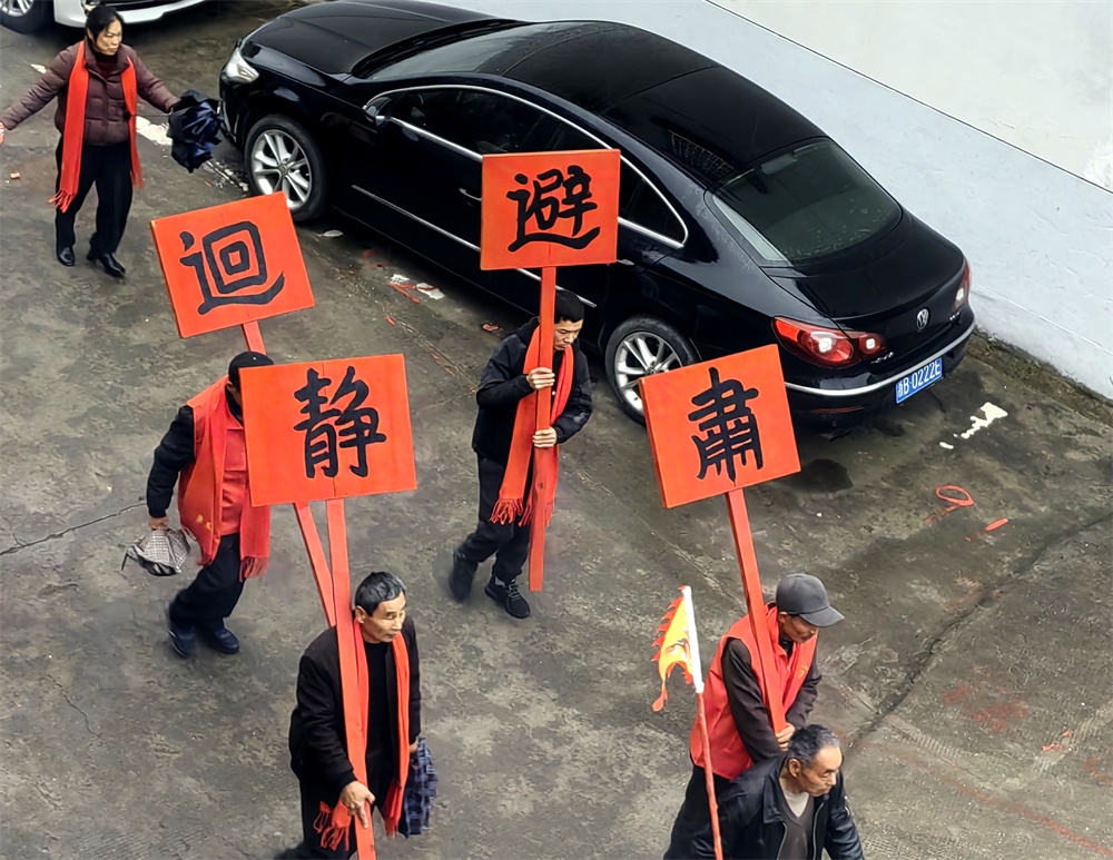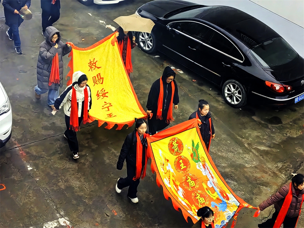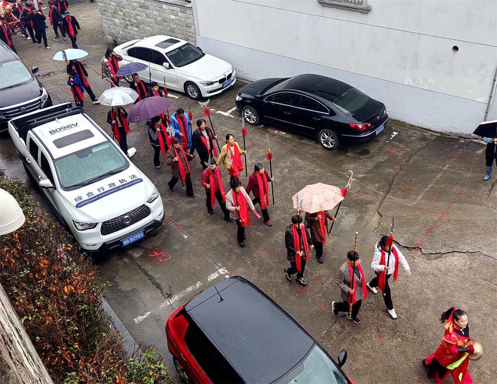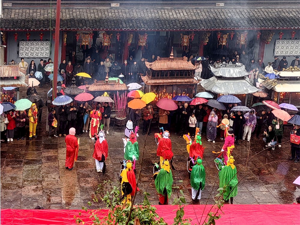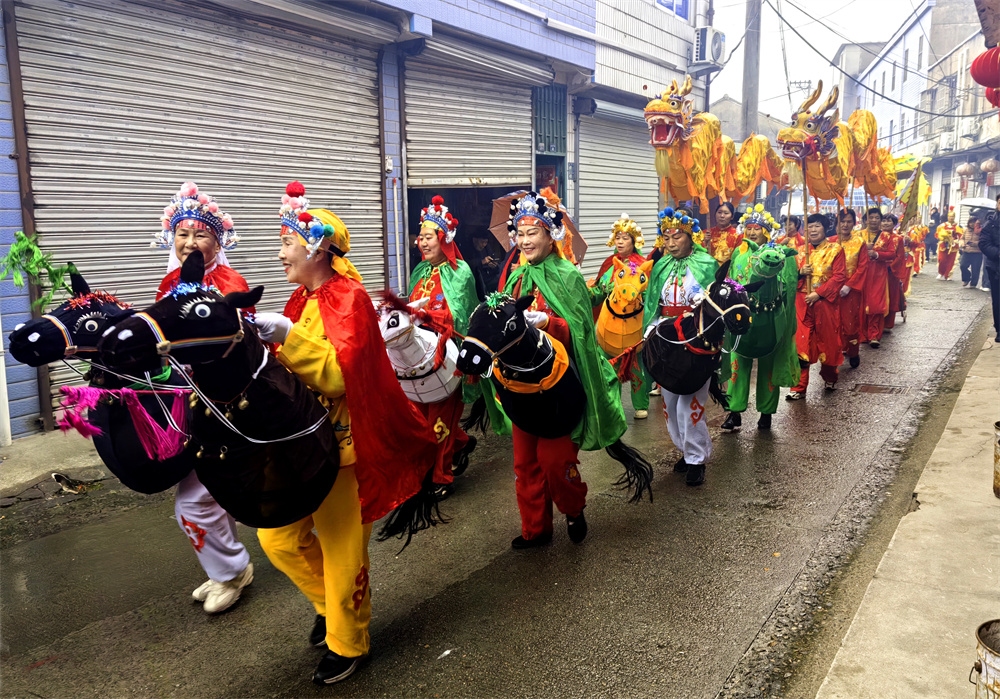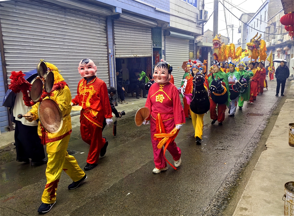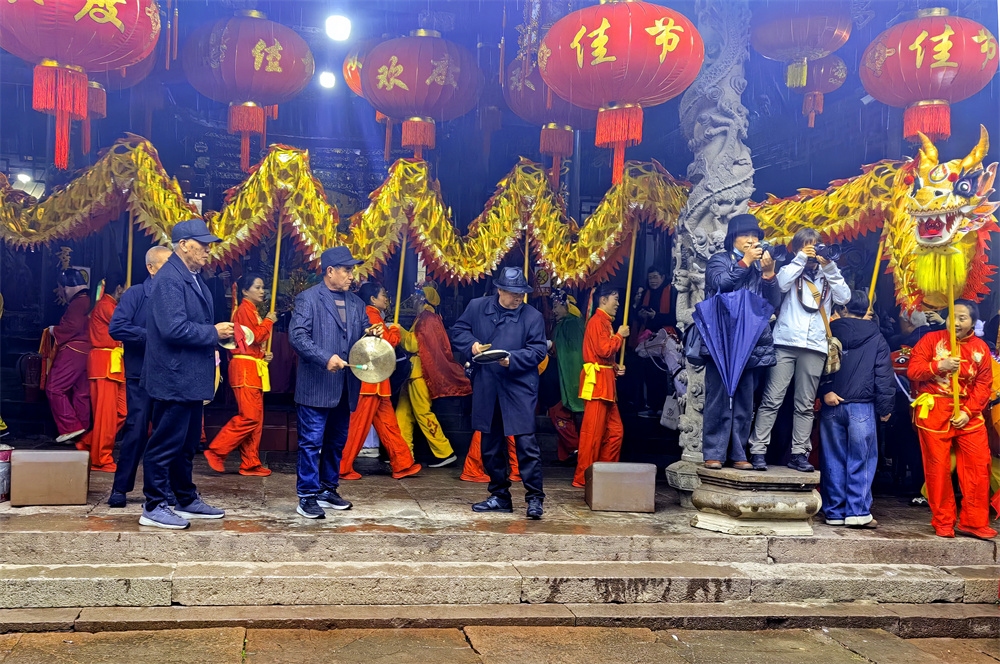 今天是农历正月十三,是奉化萧王庙举行庙会的日子,今年的萧王庙庙会是由岭丰村举办的。尽管天气阴雨,人们的热情很高,庙会很热闹。庙会的队伍出发了