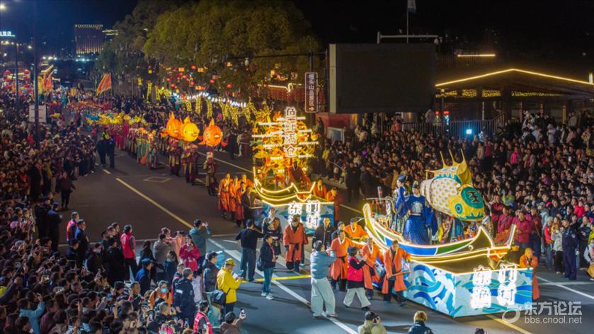![]() 逛渔市、享渔趣,看民俗大巡游,品“糊粒发财羹”……3月2日(正月十四),“大明风华·渔光人间”十四夜元宵民俗活动在国家级海洋渔文化(象山)生态保护区核心区——石浦镇热闹上演,八方游客齐聚石浦港畔,万人空巷畅享千年渔港的海洋文化和渔家风情。 傍晚六点零八分,盛大的“走十四”踩街活动正式开始。在激昂的锣鼓声中,32支近800人组成的特色巡游队伍,从延昌小学出发,沿着大华路、渔港北路、渔港中路、海峡广场、金山路等石浦主要街道和地标巡游,将元宵的喜庆送往大街小巷。 ![]() 巡游队伍中,明代战车队巍峨雄峙、旌旗猎猎,重现戚家军沿海抗倭的铁血岁月;东海船灯队踏浪而来、步步皆景,寄托着渔家人“一帆风顺”“鱼虾满仓”的美好祈愿;10余支渔灯队传统与现代创意交织,穿梭巡游、光影流转……所到之处,一片欢腾。 ![]() ![]() “渔乡风俗独特又美丽!象山海洋渔文化太迷人了!”“这里的山海渔港故事和历史,让人惊叹!”几位来自美国、俄罗斯、阿塞拜疆的国际友人第一次参与并感受热闹的灯会和踩街巡游,感叹体验到了地道中国年味。 在海丰广场,“大明风华”元宵灯会打造沉浸式明代渔港场景,璀璨灯会结合“烟火气”的渔光集市,吸引众多游客“穿越时空”,身临其境体验一把明“潮”生活。“吃糊粒羹喽!”一口3米口径的巨型大锅占据C位,现场烹制的石浦元宵特色美食——糊粒羹,香气弥漫、挑动味蕾。 “一曲笙歌春如海,千门灯火夜如昼”。除了巡游、灯会、集市,石浦港畔,还有数千盏渔灯“妆点”大街小巷,更有昌国卫的龙庆进十庙、跑马灯、腰鼓舞等非遗传承项目创新展示。游客们漫步港湾,灯火融融、渔光点点,一夜鱼龙舞,年味满荔港。