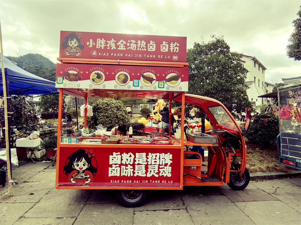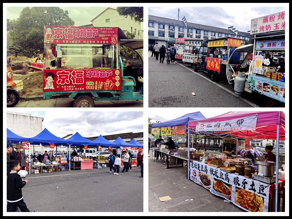 街上有很多各色摊档和售货车