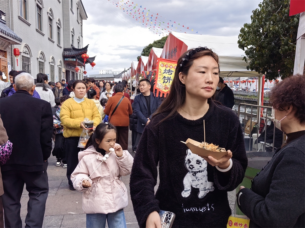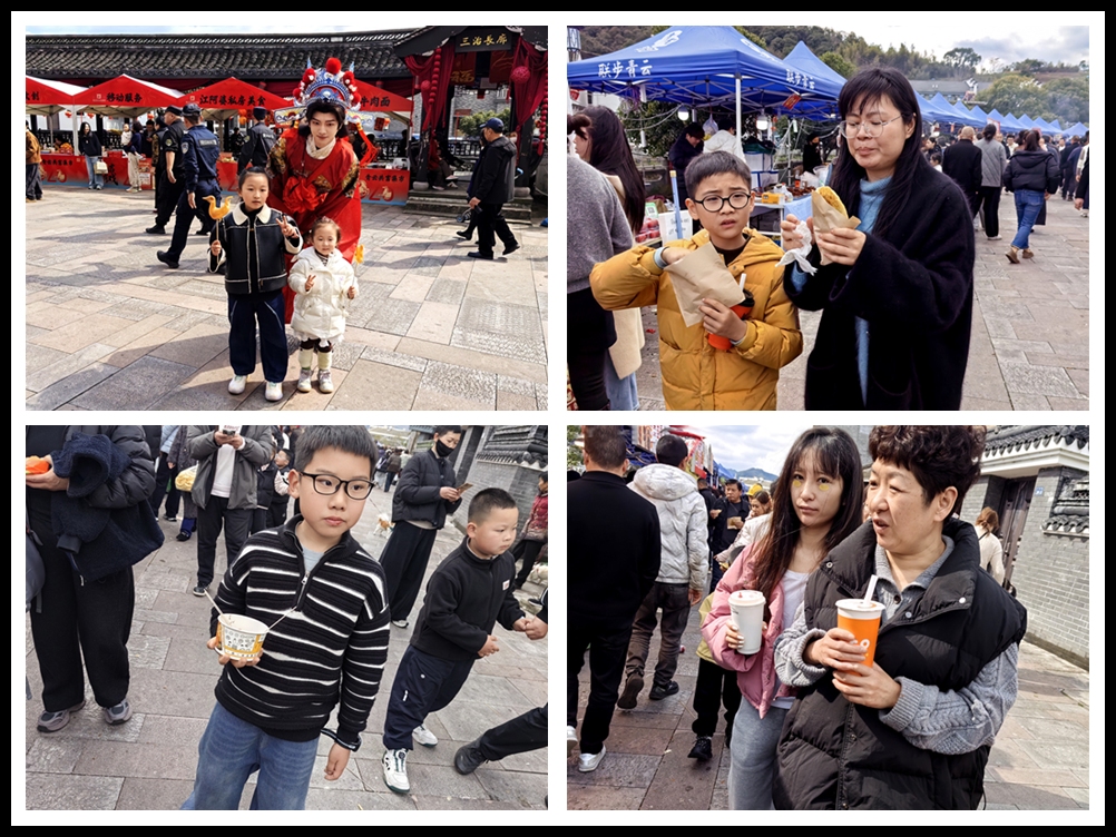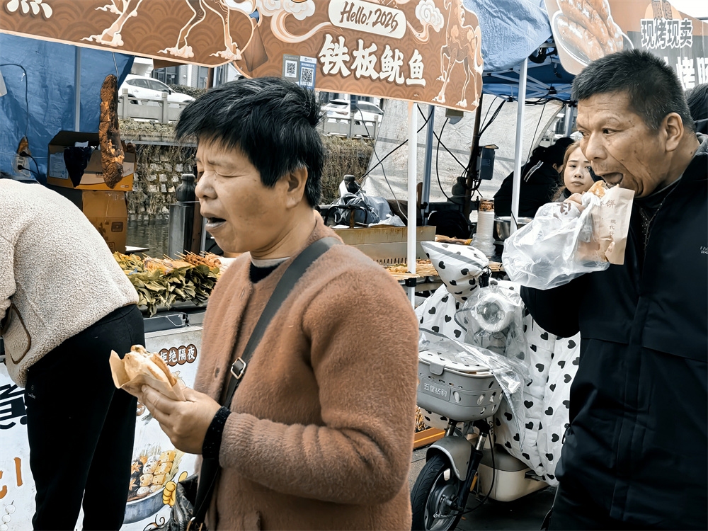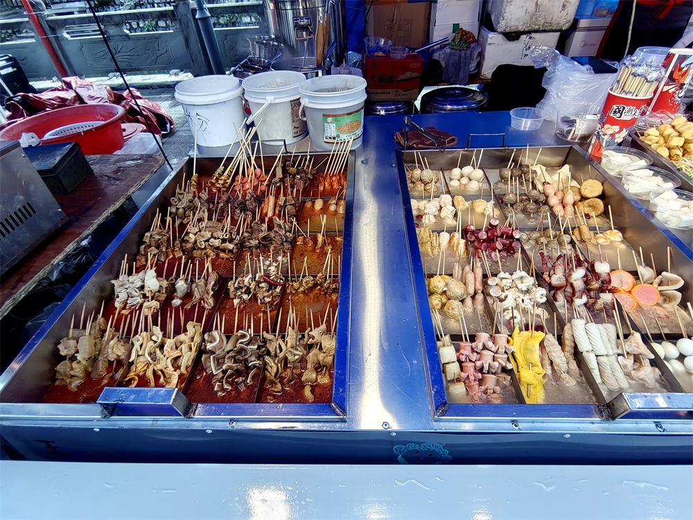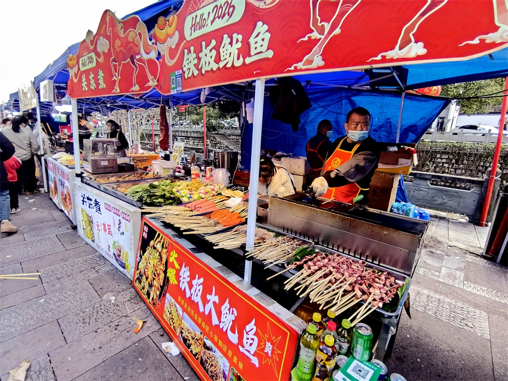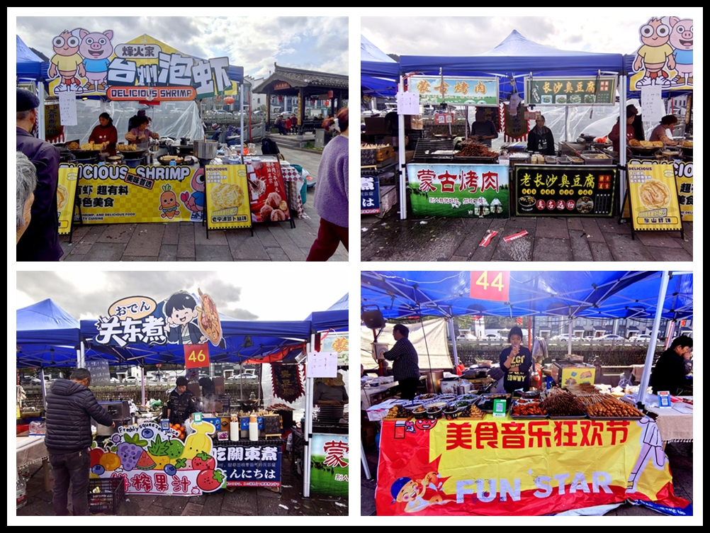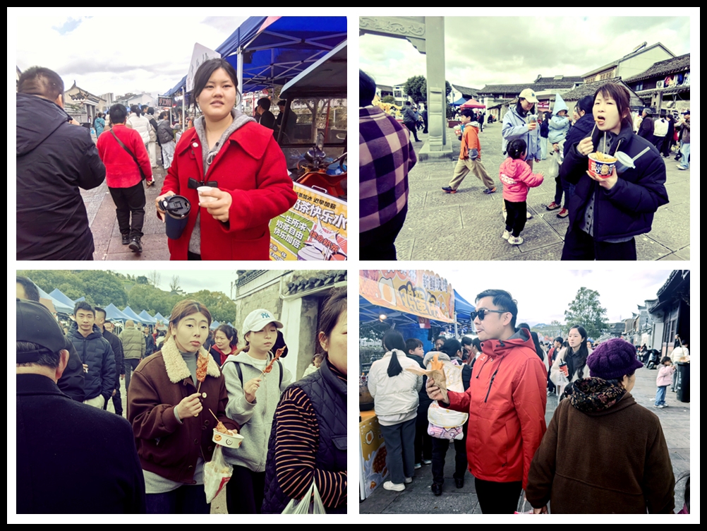 人们品尝着各种美食