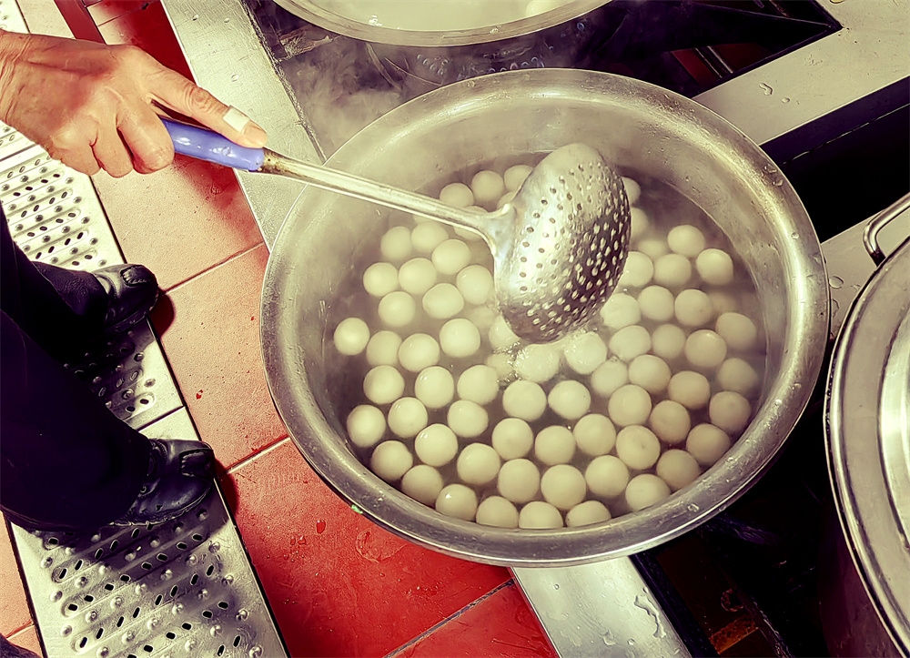文化礼堂2楼,元宵汤团正在制作