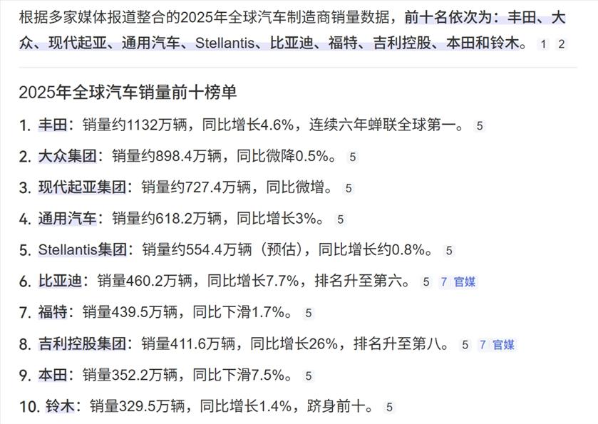 2025全球汽车销量TOP10刚出炉,直接刷爆车圈!比亚迪、上汽、吉利三大中国三家车企首次一起挤进前十,打破了日德韩车企霸占前十的老格局。
