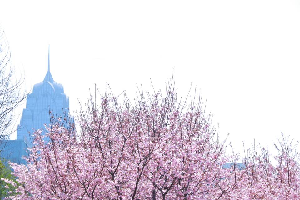 最近这两天天气很好,看到网上说鄞州区政府门前樱花开得很好,有空去看了一下,果然这里的樱花正在盛放期,有好多人在这里拍照打卡,为了拍照自带梯子的人也很多,宁波最近真的太美了。