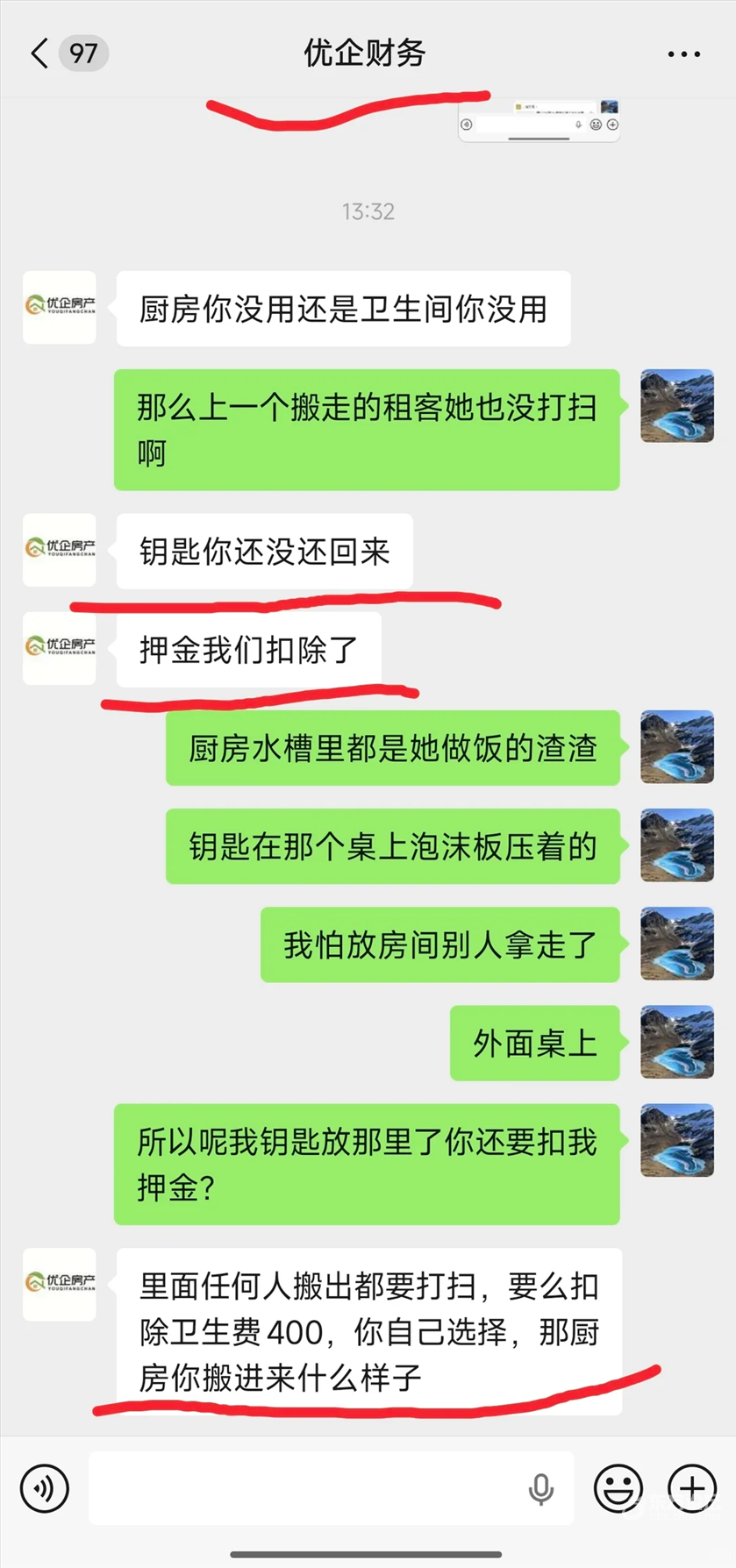 请宁波的小伙伴们避雷这个房产中介,扣钱的理由真是奇葩,“钥匙没还,扣钱”,钥匙还了没得逞又说“卫生费扣钱”,挺恶心的,请记住这个优企房地产!