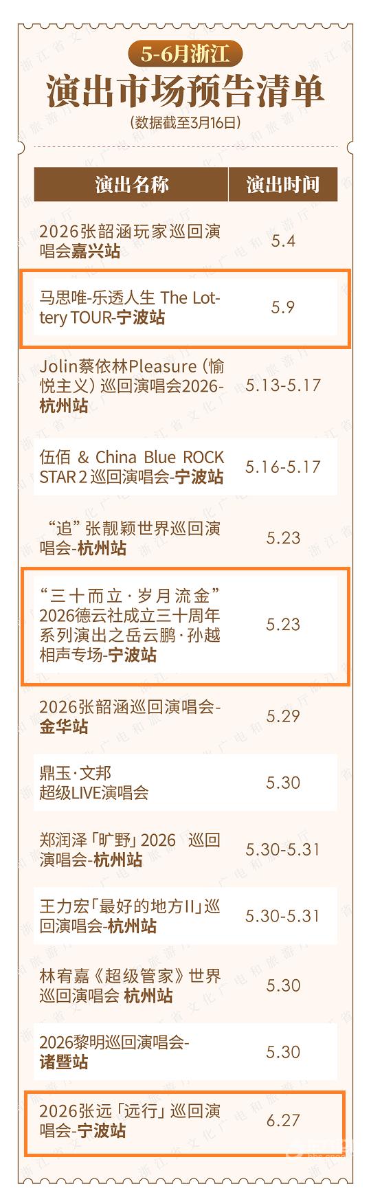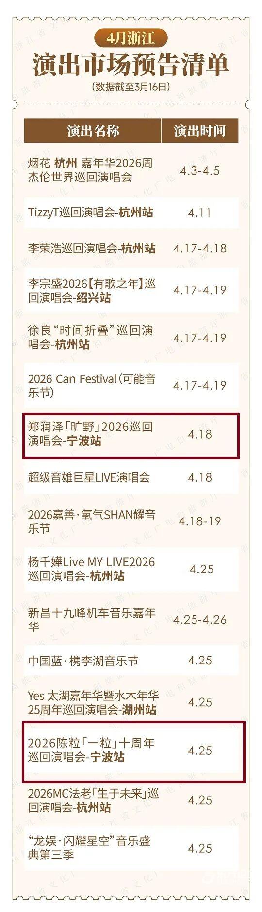 多场演出将在宁波举办