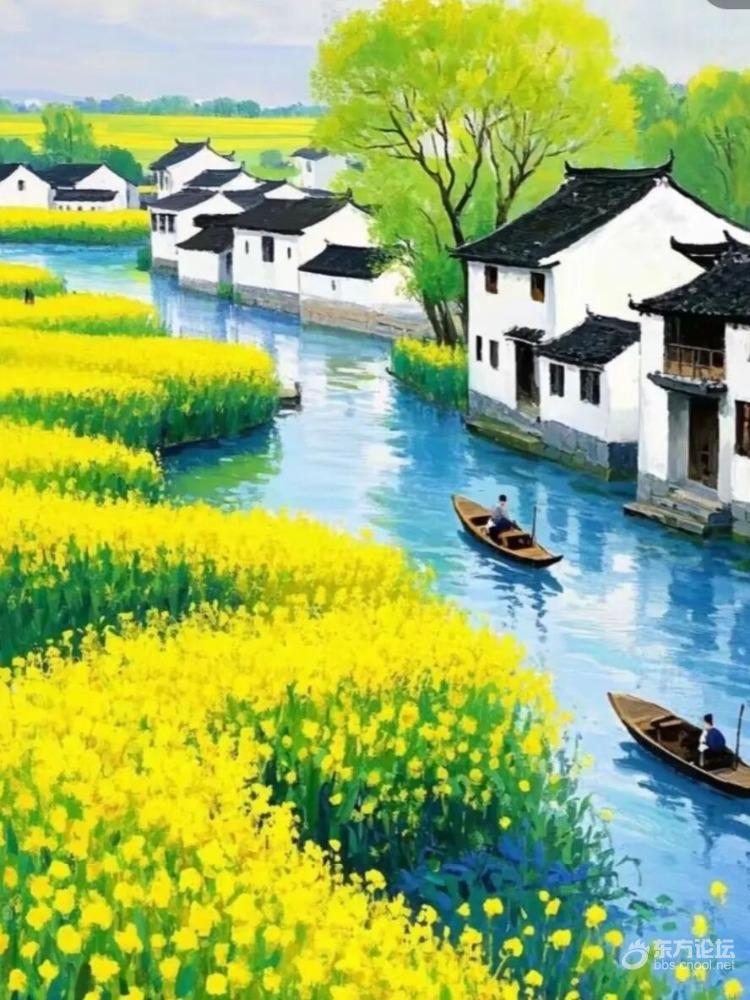 江南三月烟霞醉,水碧山青画卷开。