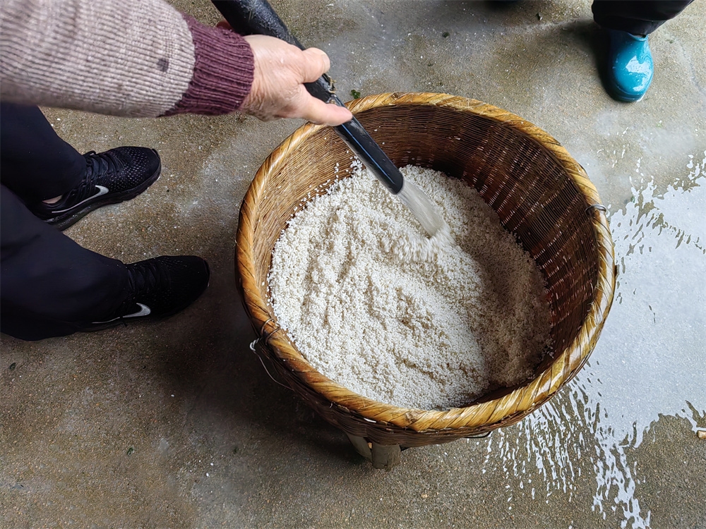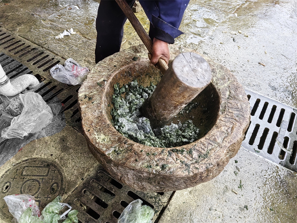 在我们中国的大地上有很多种称为“麻糍”的食品,式样各不相同,颜色多种多样,口味各有特色······ ![]() 在剡源村加工艾麻糍是这样的:客户自己带艾草和松花去,作坊里提供的15斤糯米,糯米在桶里浸泡着,这样可以做成90多块麻糍,收费89元;如果客户没有带松花去那么加收20元,共收费109元。 ![]()