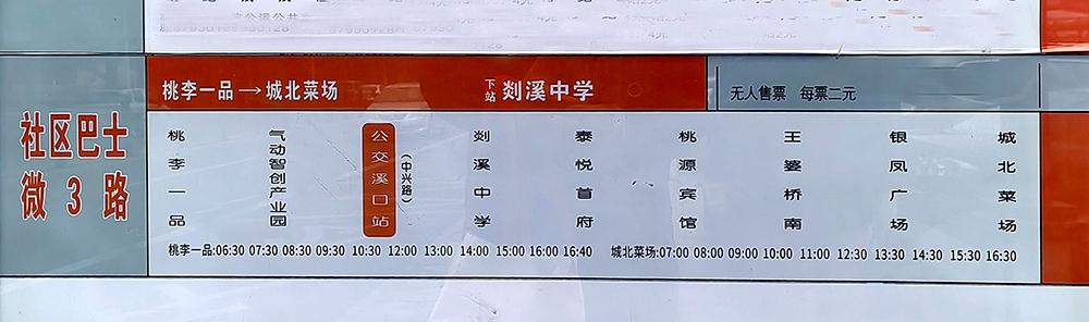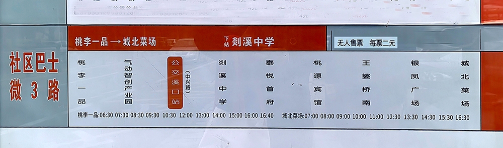 后来我在溪口公交站偶然看到了“微3”公交车的站牌