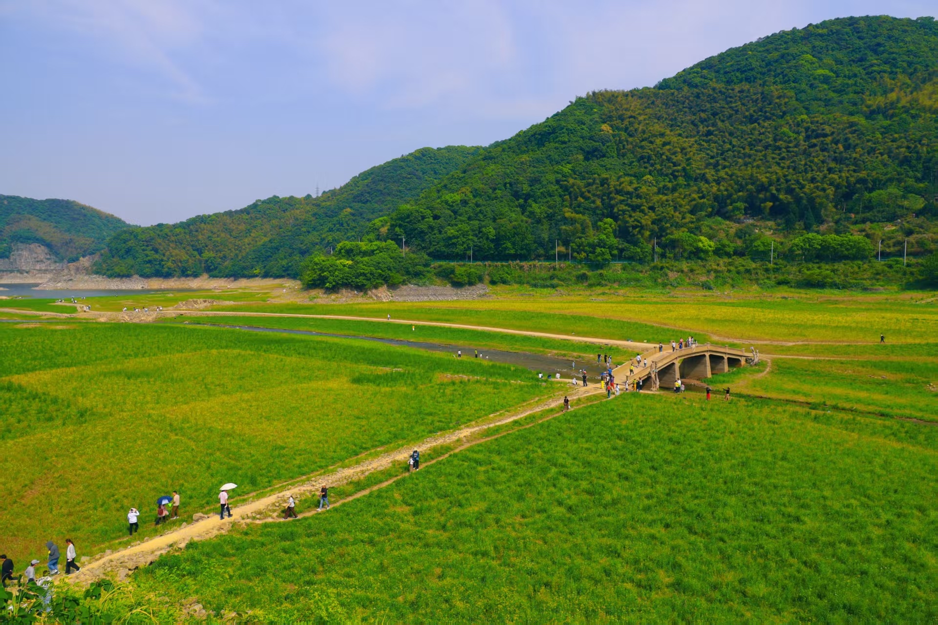 满湖春色关不住,春意盎然的塘溪堇山湖,春光灿烂,游人们休闲游玩在湖光山色之中,放养身心。露营,嬉水,呼吸着山野清新空气,美哉优哉!这个五一假期可以来一走。 ![]() 即将落幕的紫云英,诉说着春天的短暂 ![]() 树林里随处可见三五好友露营聊天 ![]() ![]() ![]() ![]() ![]() ![]() ![]() ![]() ![]() ![]() ![]() ![]() 桥上拍照打卡的人很多 ![]() ![]() ![]() ![]() 站在湖滩上,仰望不一样视角的观景平台 ![]() 爱跳舞的萌娃在桥上欢乐的舞蹈,迎得游人们纷纷驻足欣赏。 ![]() “大草原”给宝宝拍照超出片 ![]() ![]() ![]() 几个玩童在溪流中嬉水 ![]() ![]() 交通攻略:自驾导航“堇山湖/宝庆寺”,草甸入口就在靠近宝庆寺的路边观景台的路牌后面。公共交通出行可乘地铁4号线在东钱湖站D口出,换乘公交665路在童村站下车步行前往。 ![]() 梅溪两岸曾有东庆桥互通,屡经毁而又建。1921年,鄞县商人陈磬裁捐资三千元大洋重建东庆桥,1922年6月完工。村人为感谢陈磬裁之善举,命名为“磬裁桥”,这也是陈磬裁捐建的“十桥十亭”中的第三座桥,因此又名“磬裁第三桥”,是宁波市内早期钢筋水泥桥梁的杰出代表。 |